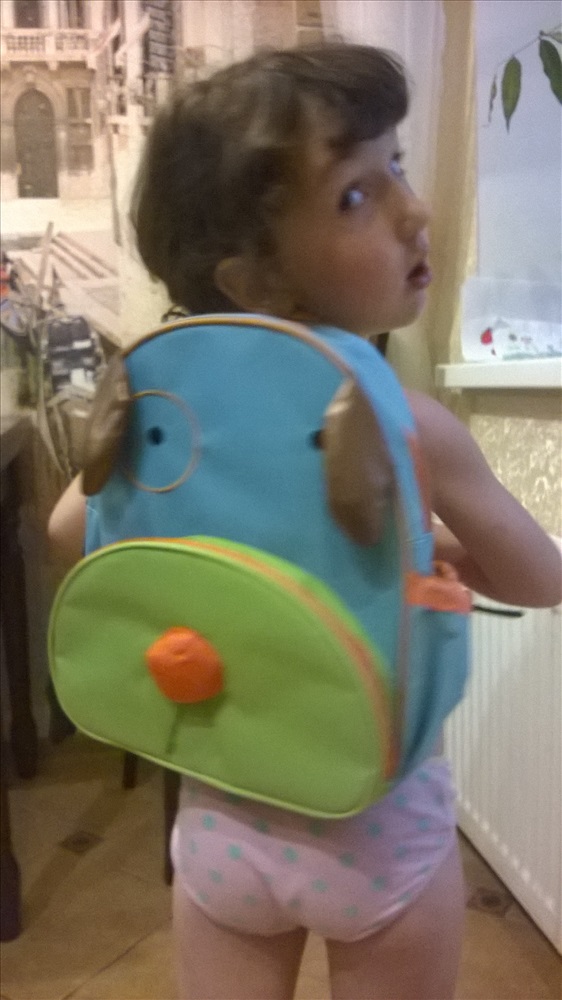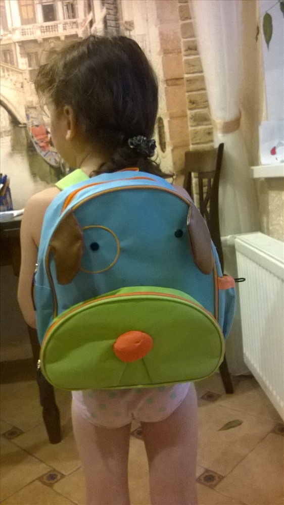 Получили рюкзачок и бутылочку. Бутылочка упакована, я не стала раскрывать-т.к. она на подарок. А рюкзачок не удержались и померяли. На фото девочке 5 лет. Размер рюкзачка в самый раз. Я думаю он соответствует заявленным от 3 до 5 может дальше больше. Очень симпатичный и прикольный. Выглядит добротно, как будет носиться узнаем потом у счастливого обладателя после того как подарим. Честно мне понравилось. Куплен для мальчика, но может носить и девочка, особенно если ее маме приелись все эти розово-фиолетовые раскраски.