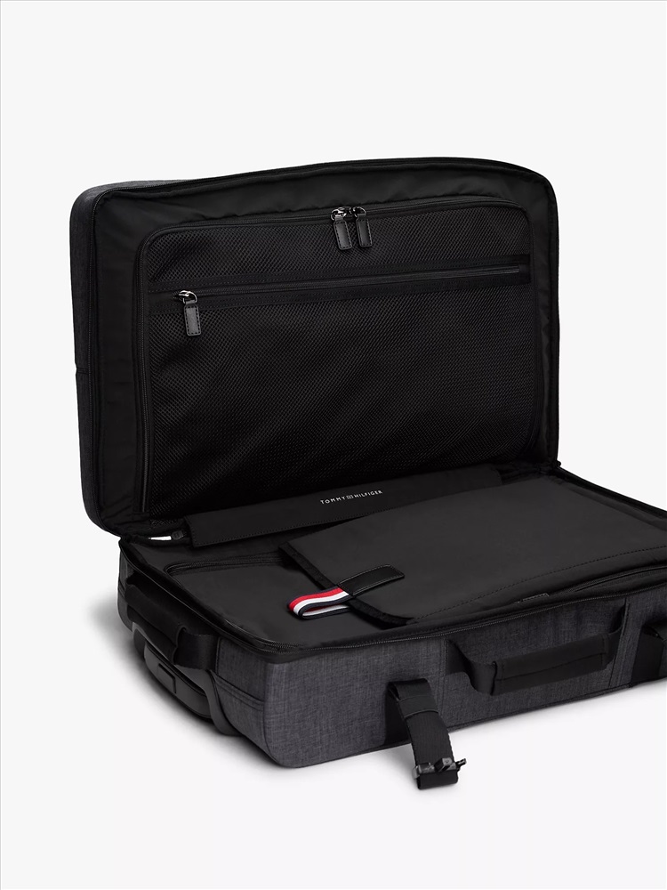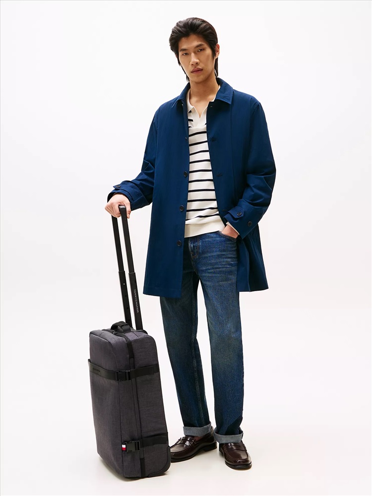 Tommy Hilfiger men's bag. Innovative and functional, our 21" upright spinner is the perfect travel companion. Four multi-directional spinner wheels provide effortless rolling to make getting around a breeze. Constructed from lightweight yet durable material, it's ready to take on the rigors of travel.