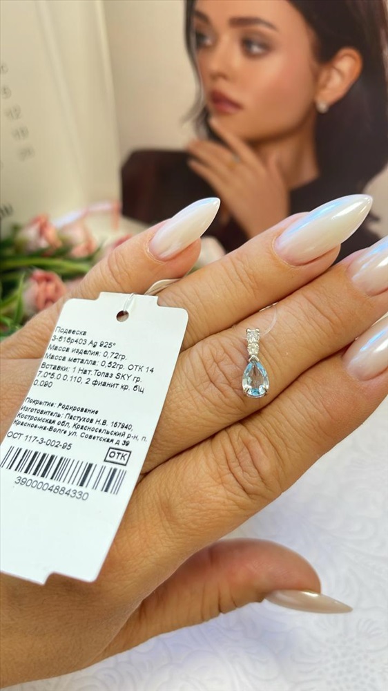 3-616р403 Подвеска 2 фианит кр. б\ц 0.090, 1 Нат.Топаз SKY гр. 7.0*5.0 0.110