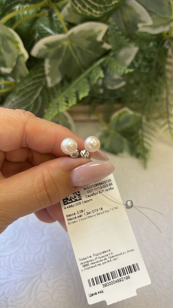 4-498р1005 Серьги 2 Культ.Жемчуг Белый Круг 7 0,740