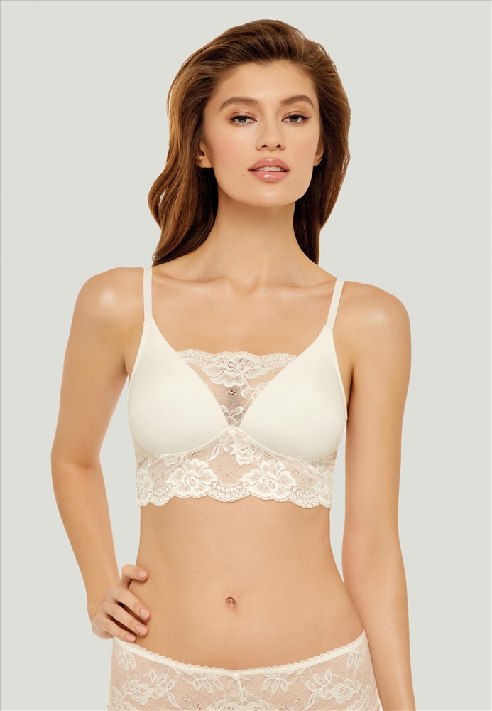 Бескаркасный кружевной топ с формованной чашкой. Регулируемые бретели. Ажурные края.