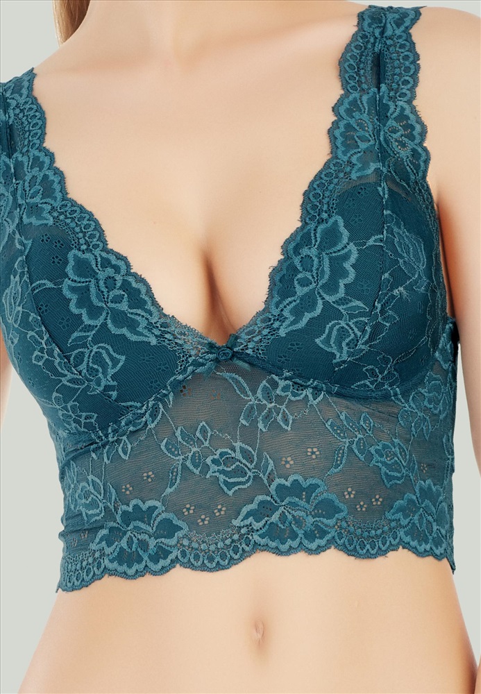 Укороченный топ с мягкими корректорами для легкого формирования груди. Ажурные края.