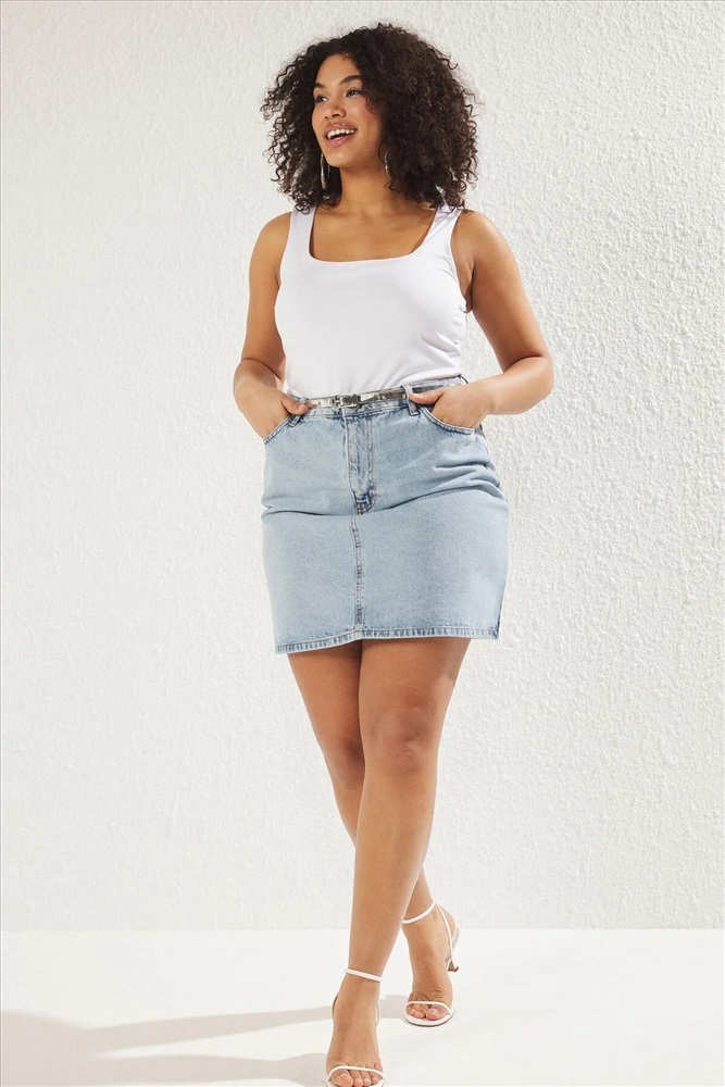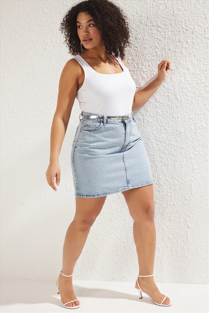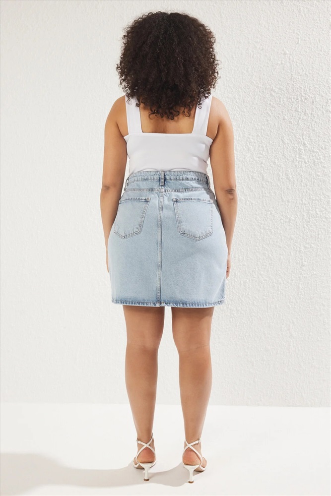 Açık Mavi Yüksek Bel A Shape Denim Etek TBBAW23AZ00042