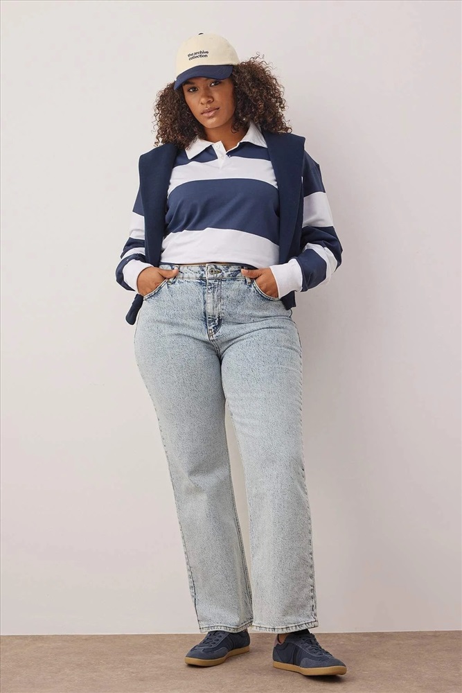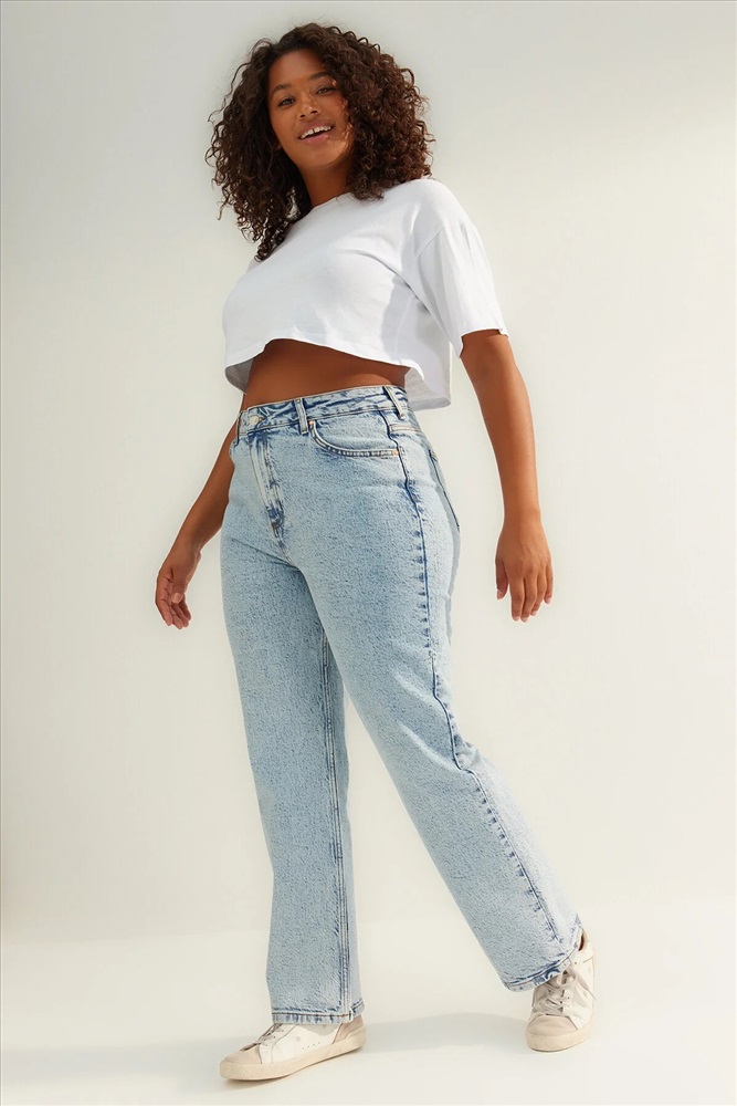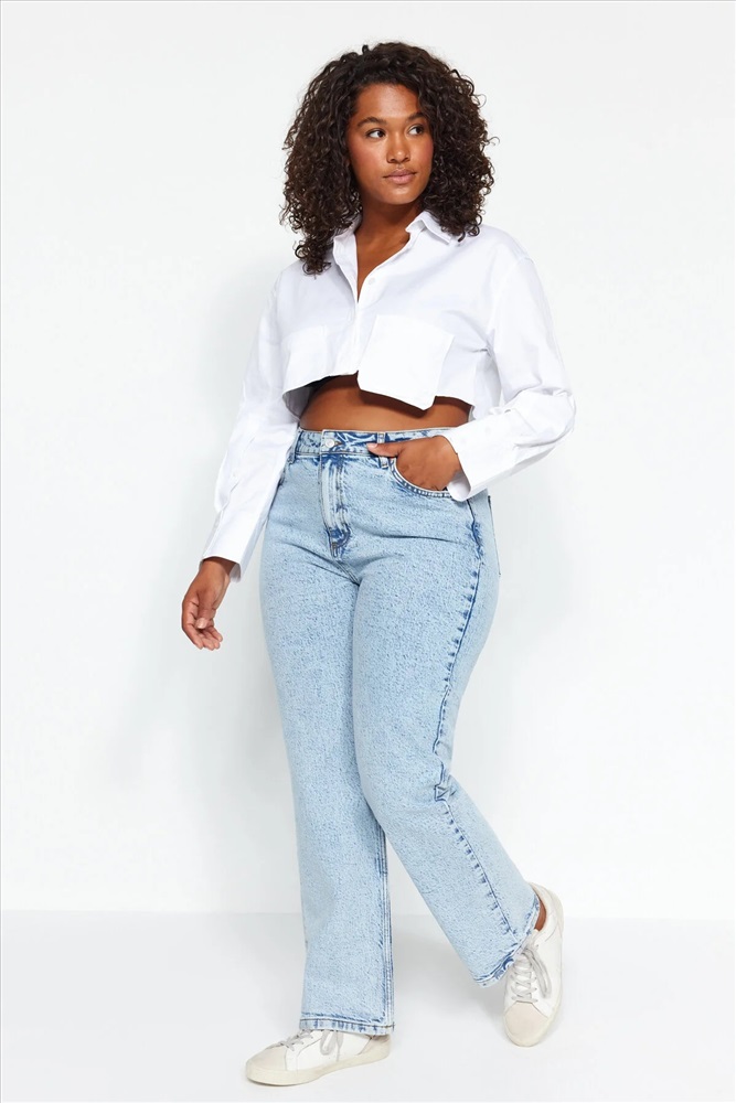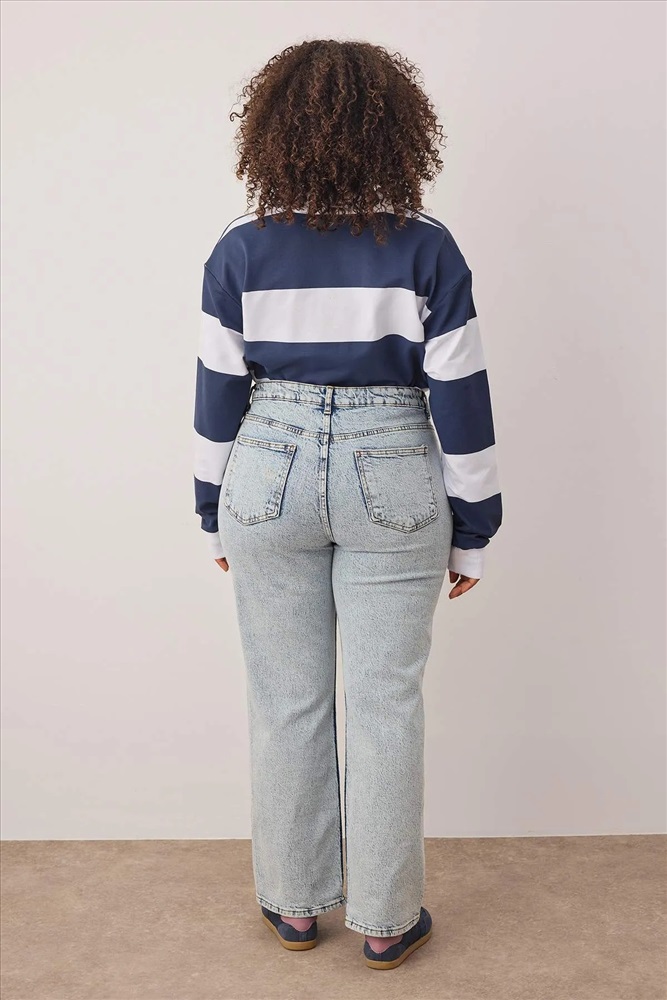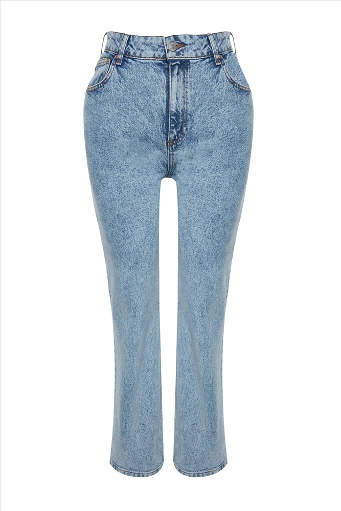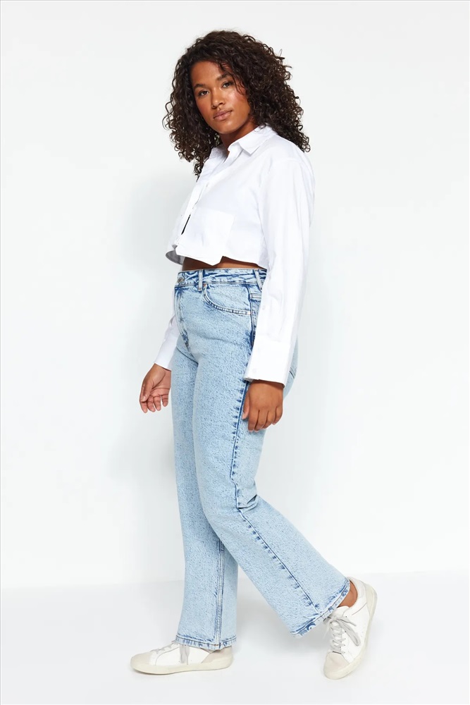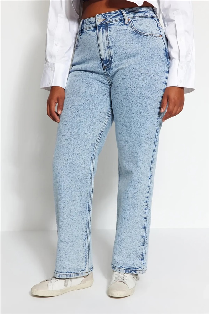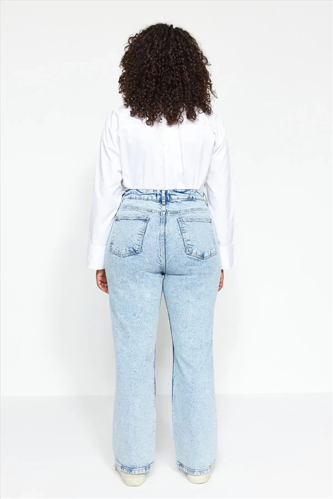 Açık Mavi Yüksek Bel Comfort Straight Fit Büyük Beden Jeans TBBAW24CJ00045