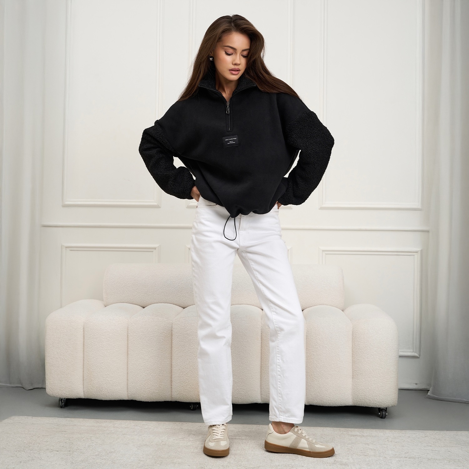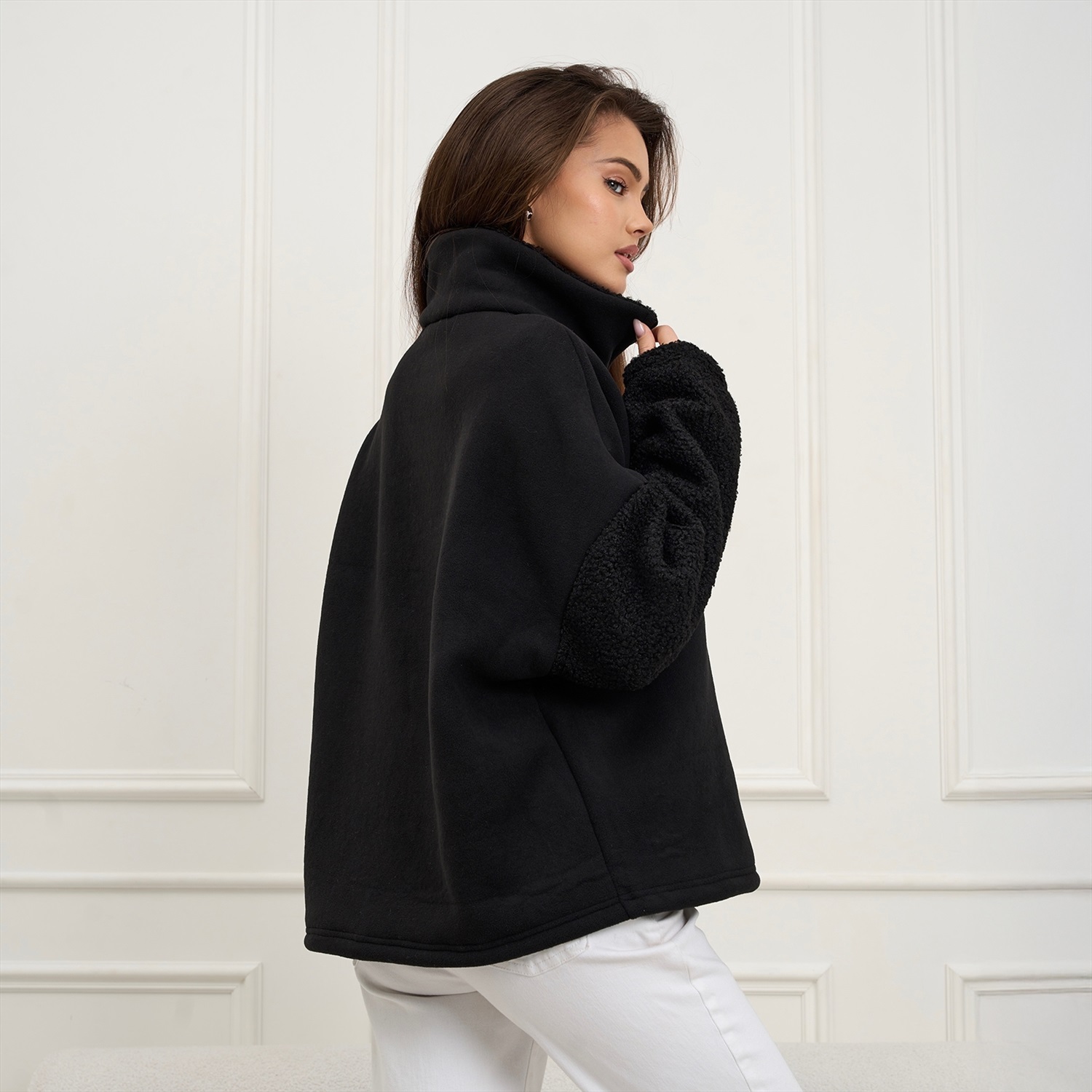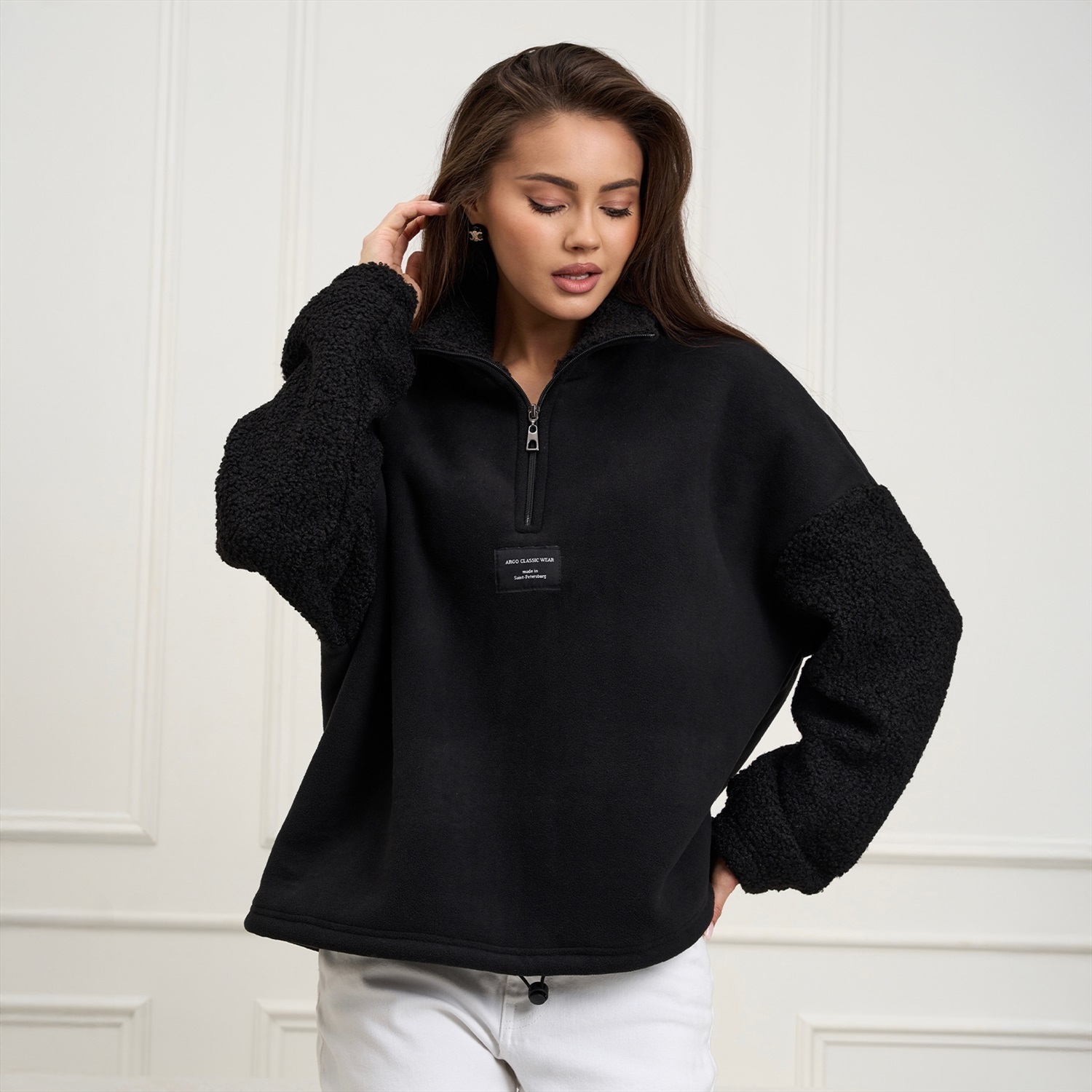 Женский анорак свободного кроя с воротником стойка и кулиской по низу.Материал: Шерпа - популярная синтетическая ткань, известная своей теплотой, комфортом и долговечностью. Мягкий, толстый материал с высоким ворсом с одной стороны и гладкой с другой. Обладает хорошей водоупорностью и невысокой воздухопроницаемостью.Состав: 100% Polyester