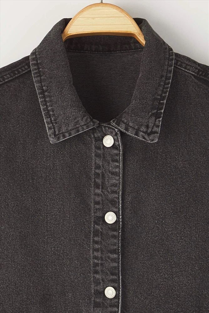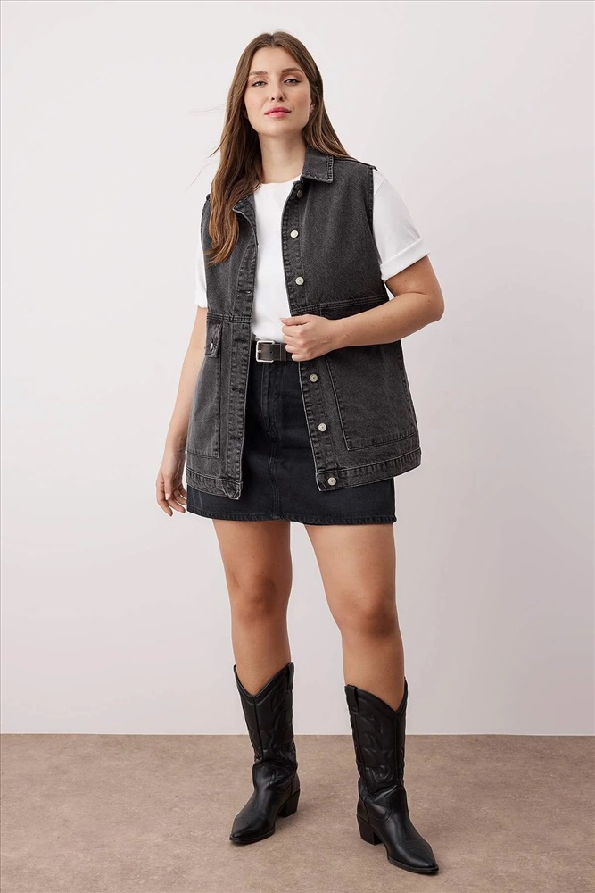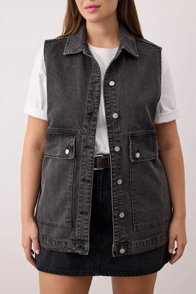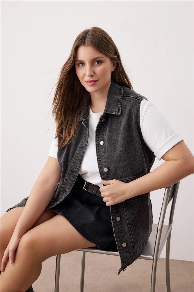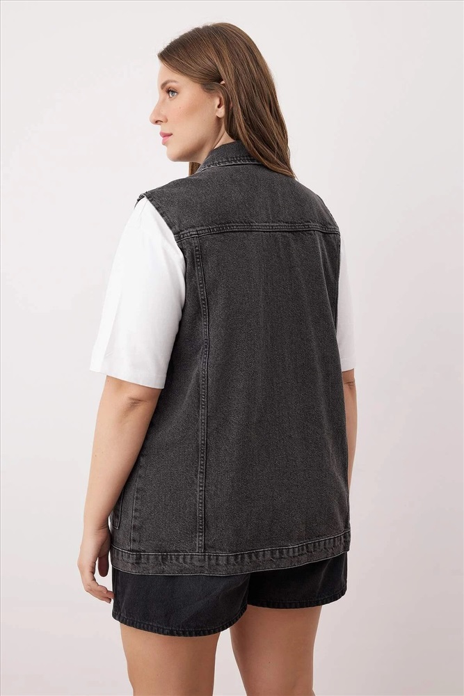 Antrasit Gömlek Yaka Cep Detaylı %100 Pamuk Denim Yelek Ceket TBBAW26BH00003