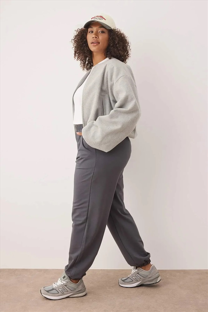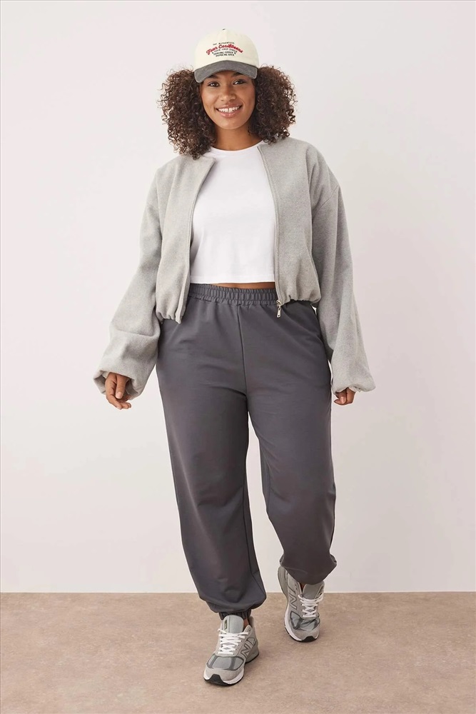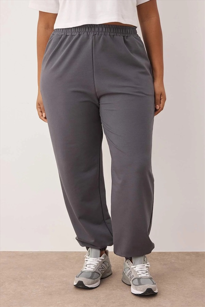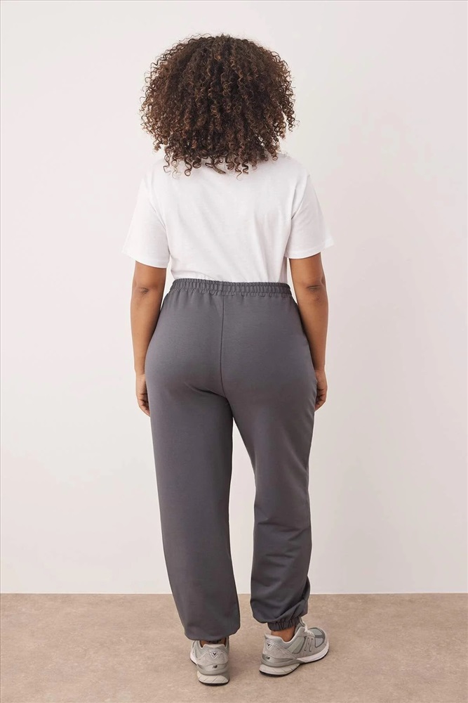 Antrasit Loose Jogger İnce Paçası Lastikli Esnek Bel Örme Büyük Beden Eşofman Altı TBBAW23AJ00002