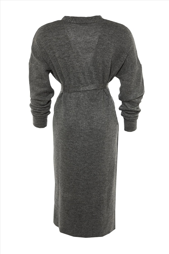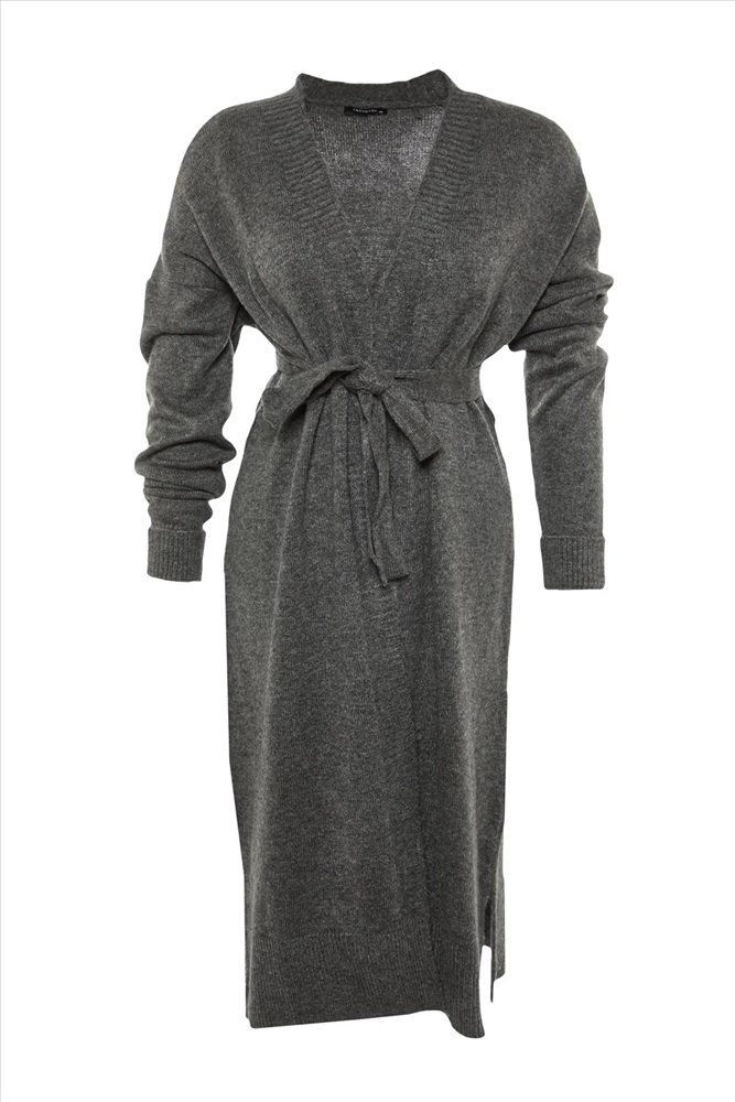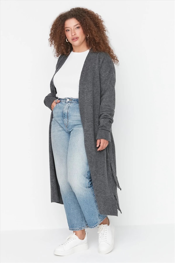 Antrasit Oversize/Bol Kesim Triko Hırka TBBAW23AV00017