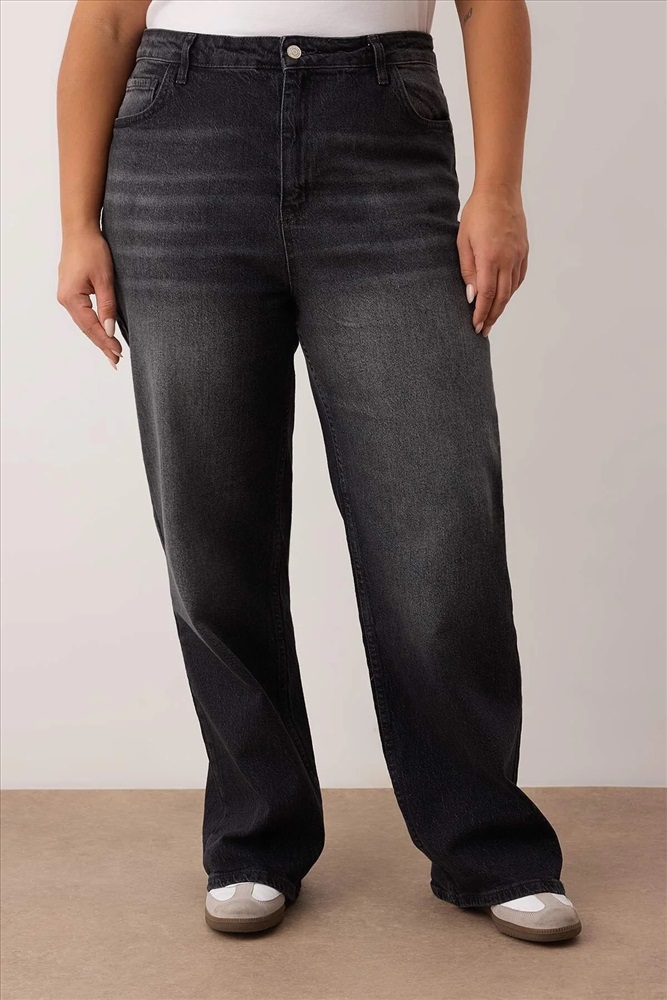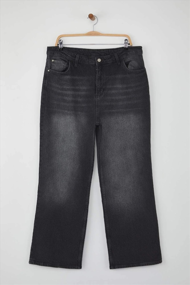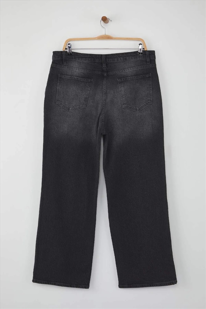 Antrasit Yüksek Bel Geniş Paça Büyük Beden Wide Leg Jeans TBBAW23CJ00020