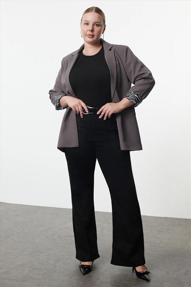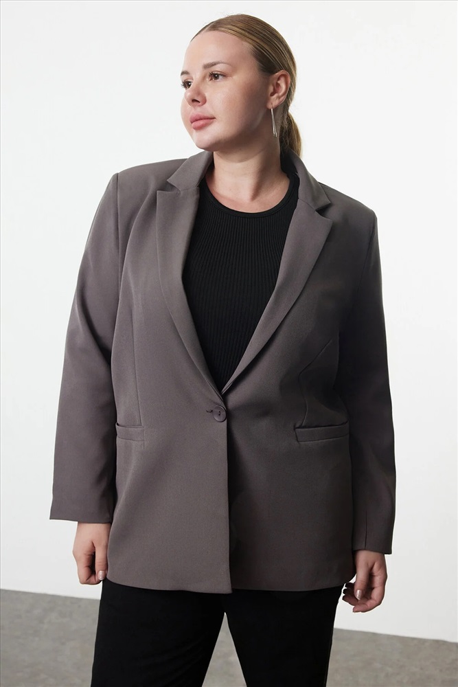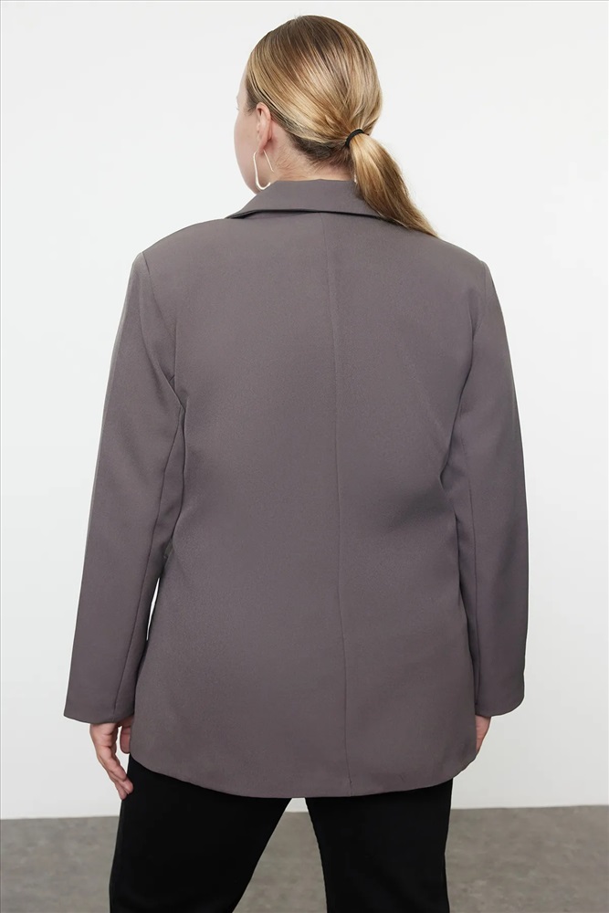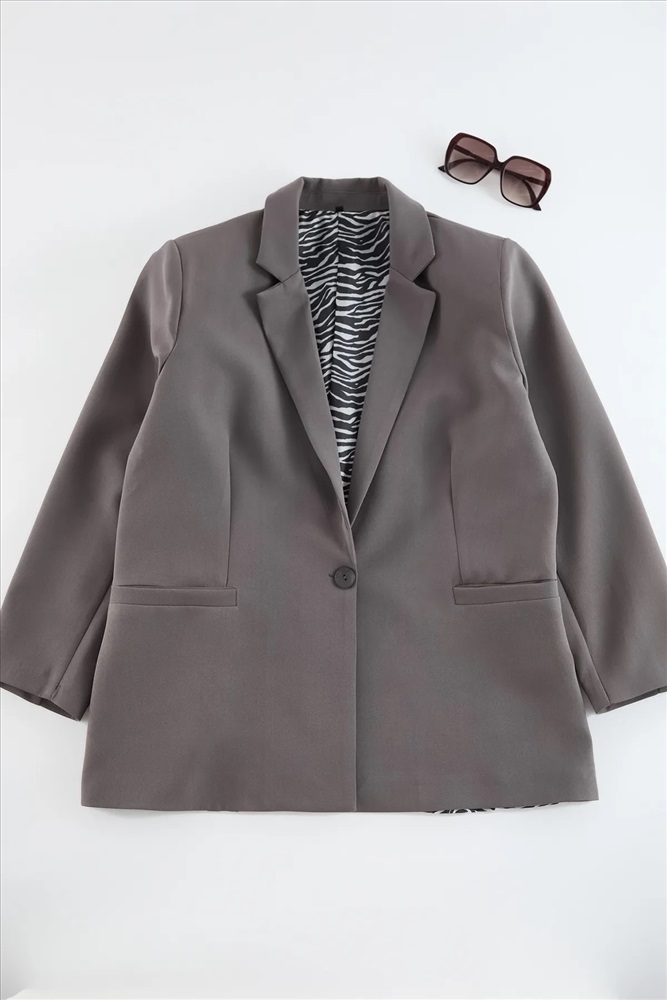 Antrasit Zebra Desenli Astarlı Dokuma Büyük Beden Ceket