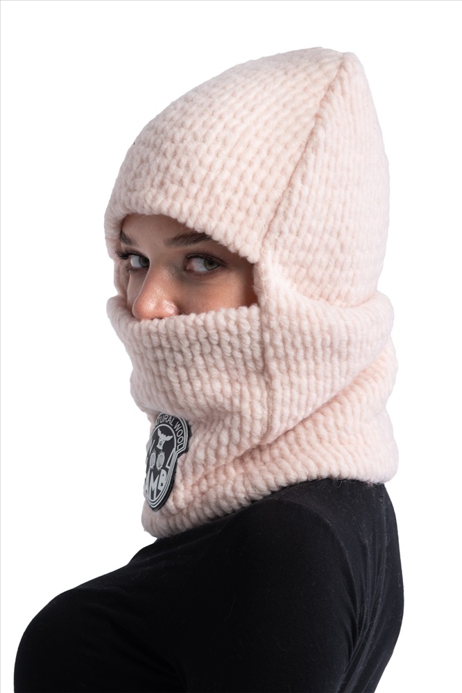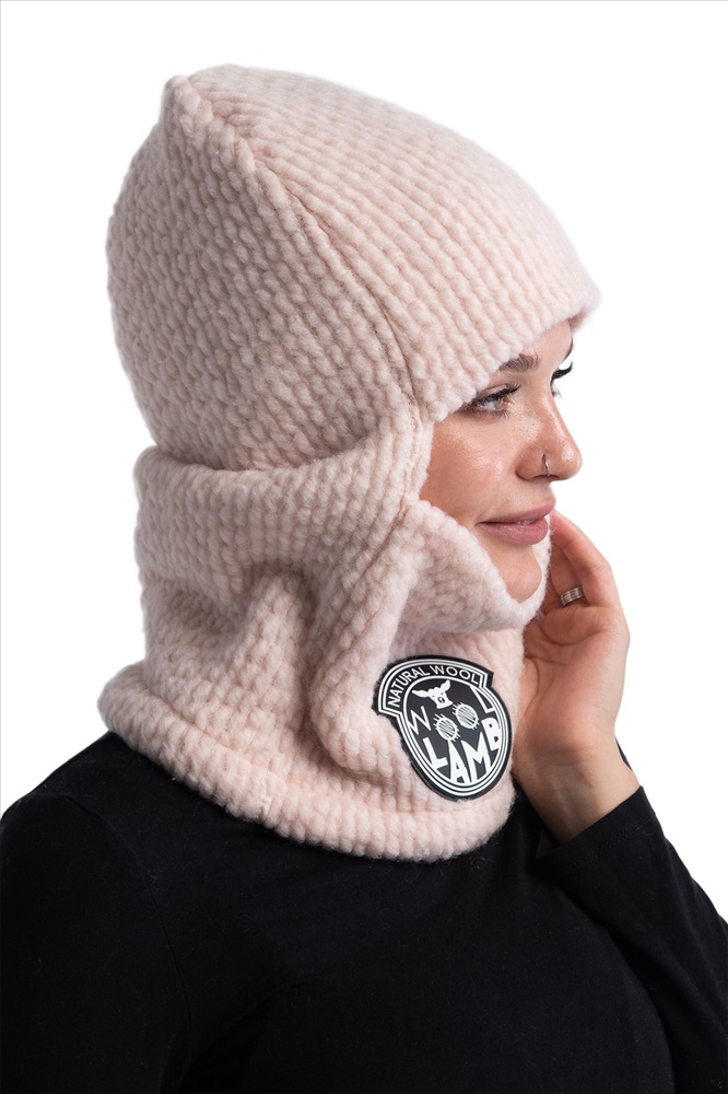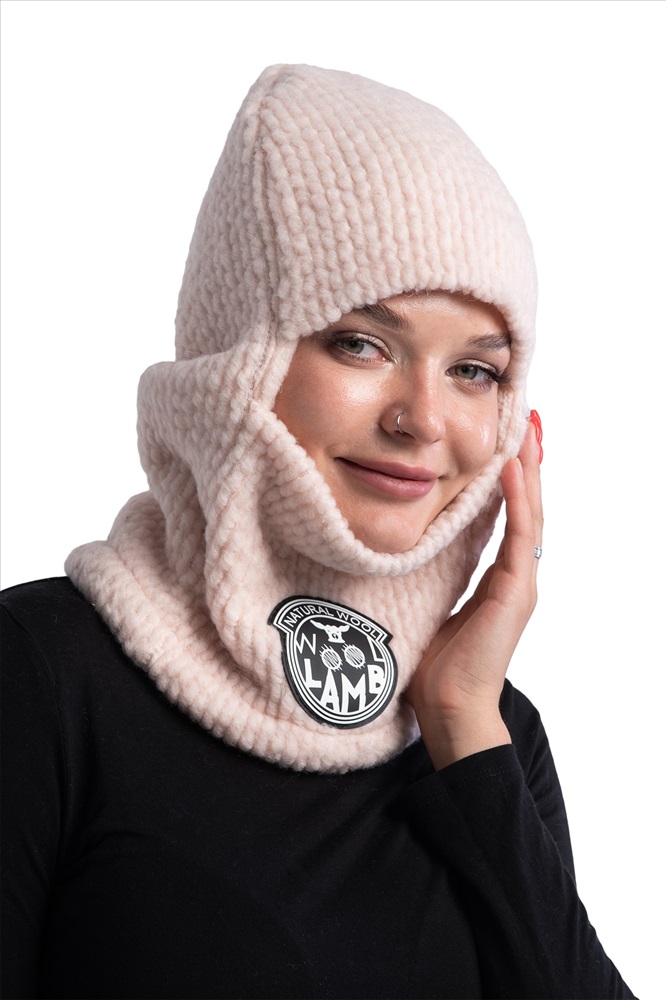 НОВИНКА!!! Шерстяная БАЛАКЛАВА из вязанного меха букле УНИСЕКС. Шапка-балаклава меховая цвета ПУДРА (бледно-розовый цвет)., Шапки из натуральной овечьей шерсти обладают большим набором преимуществ, которые известны с давних времён., -Тёплая, мягкая меховая основа материала обеспечит надёжную защиту от холода и ветра. Более того, шерсть способна впитывать влагу и не препятствует воздухообмену., -Шерсть не электризуется, является гигроскопичным материалом, а значит волосы даже при длительной носке шапки остаются чистыми и имеют опрятный внешний вид., -Овечья шерсть является самой популярной, к тому же шапки из такого материала можно носить несколько сезонов. В таком головном уборе вам будет комфортно в любую погоду.