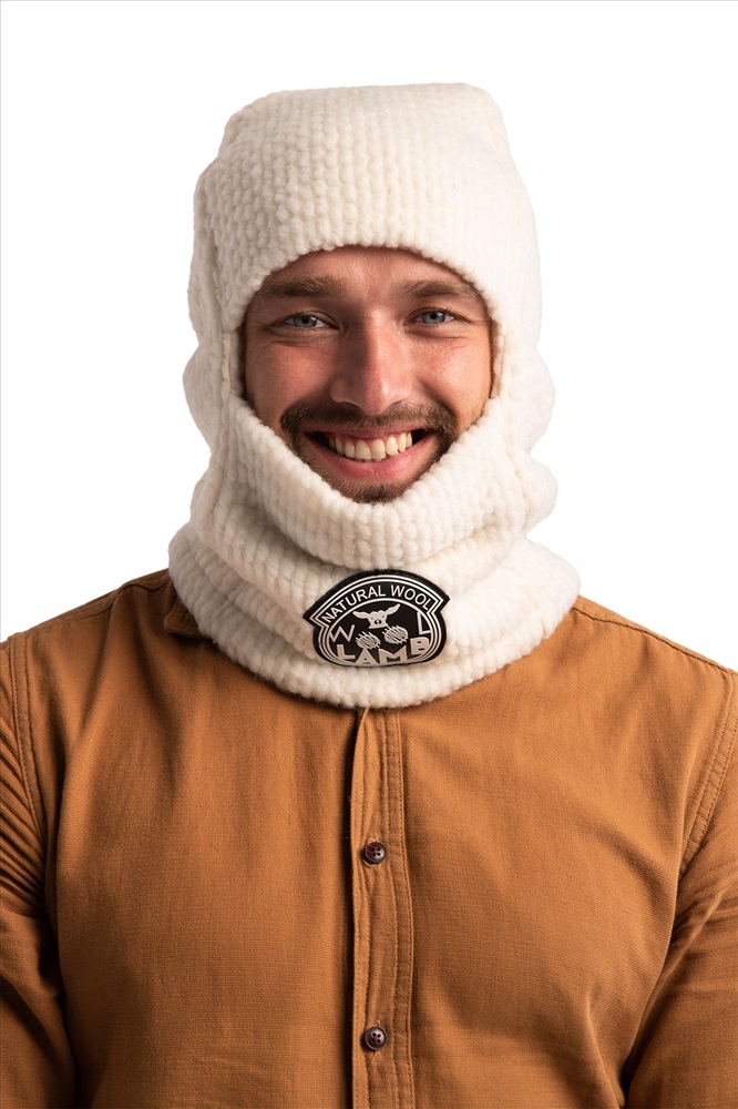 НОВИНКА!!! Шерстяная БАЛАКЛАВА из вязанного меха букле УНИСЕКС. Шапка-балаклава меховая цвета ВАНИЛЬ (белый цвет)., Шапки из натуральной овечьей шерсти обладают большим набором преимуществ, которые известны с давних времён., -Тёплая, мягкая меховая основа материала обеспечит надёжную защиту от холода и ветра.  Более того, шерсть способна впитывать влагу и не препятствует воздухообмену., -Шерсть не электризуется, является гигроскопичным материалом, а значит волосы даже при длительной носке шапки остаются чистыми и имеют опрятный внешний вид., -Овечья шерсть является самой популярной, к тому же шапки из такого материала можно носить несколько сезонов. В таком головном уборе вам будет комфортно в любую погоду.