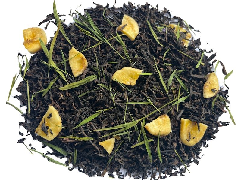 Крупнолистовой Шу Пуэр 5-летней выдержки из провинции Юньнань с добавлением кусочков банана и ростков молодого бамбука. С банановым ароматом.
