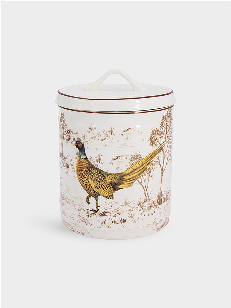 Банка для сыпучих продуктов, 1,3 л, керамика К, белая, Птицы, Hunting. Материал: керамика каменная, силикон. Мыть тёплой водой с применением жидких моющих средств и в посудомоечной машине. Можно использовать в СВЧ.