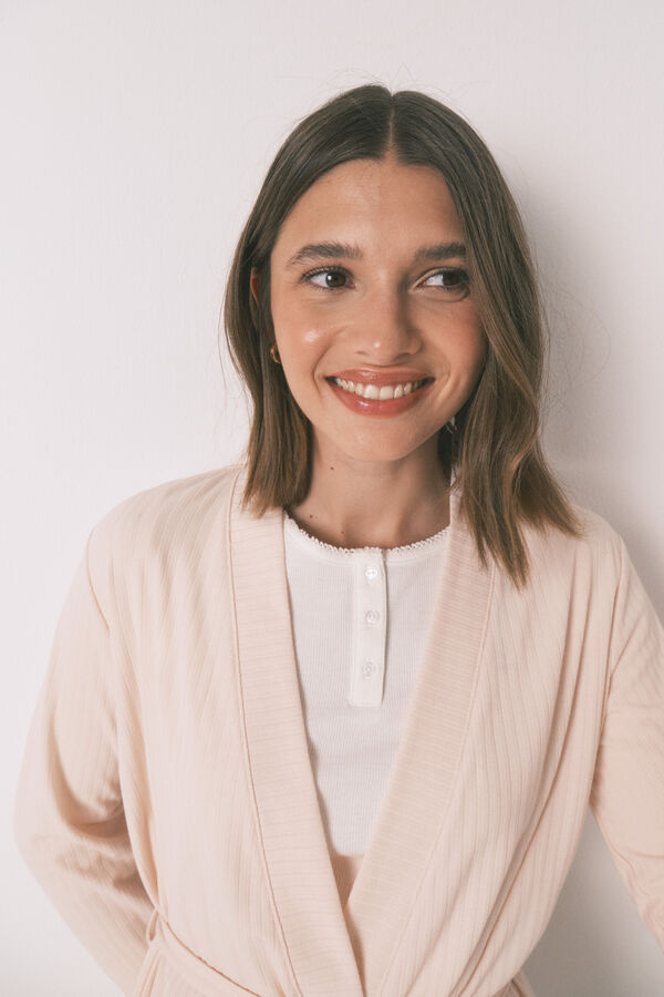 - Canalé suave y cómodo. - Cinturón del mismo género para ceñir y abrochar la prenda. - El tejido principal contiene al menos un 50% de fibras de poliéster reciclado. - Combina con otras prendas y accesorios de la colección.