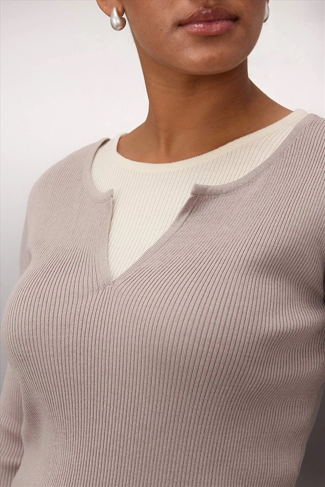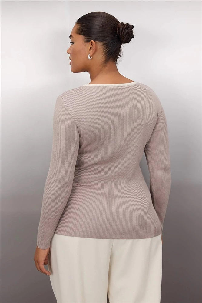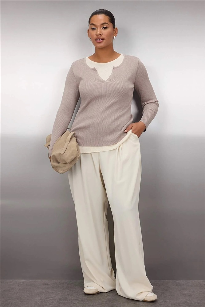 Bej Çift Katman Görünümlü Fitilli Triko Kazak TBBAW26AN00017