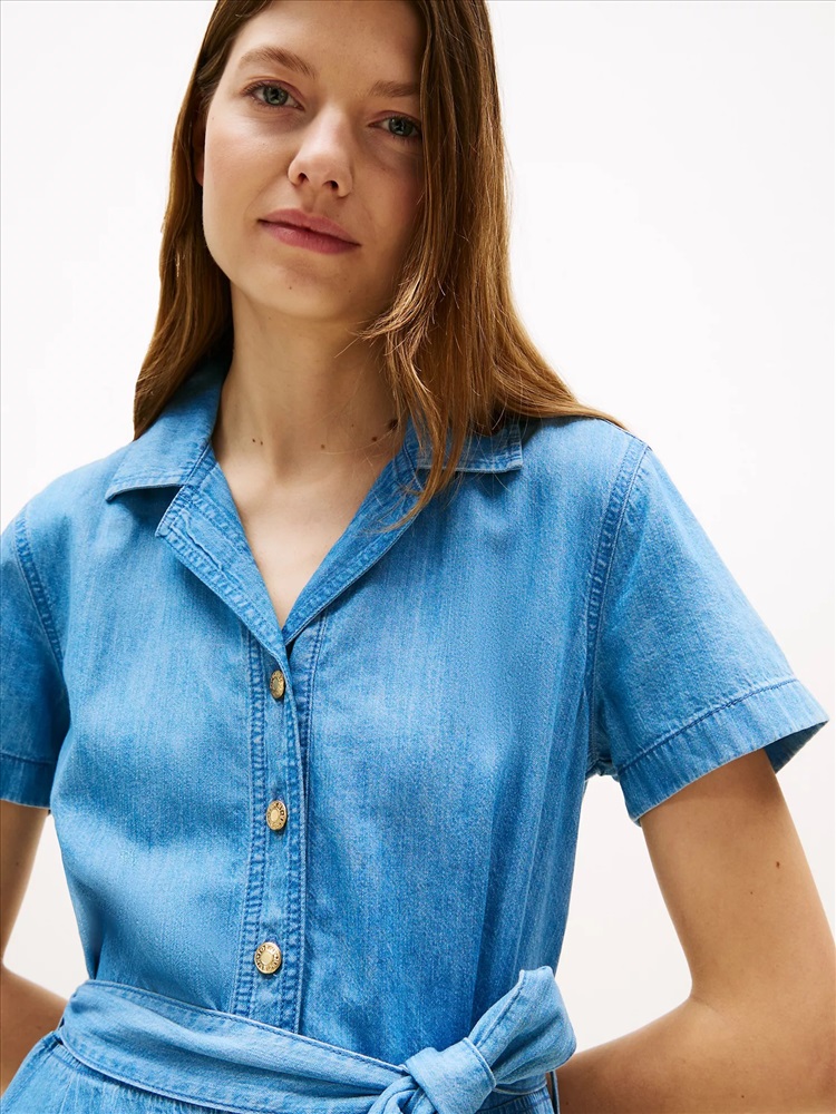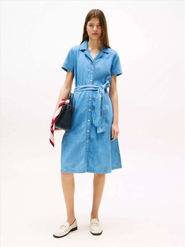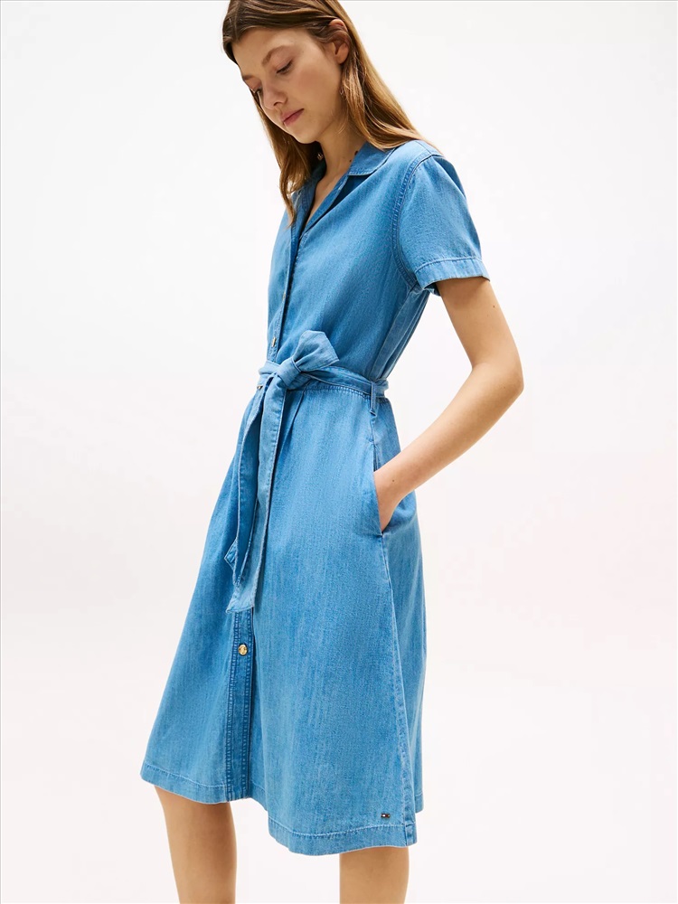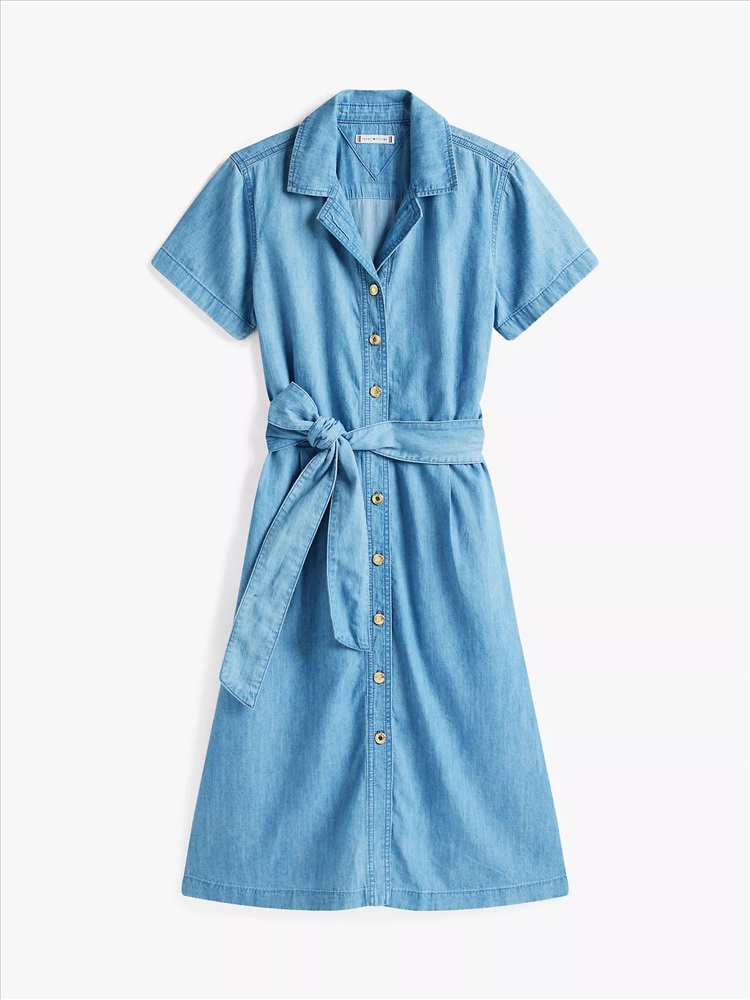 Tommy Hilfiger women's dress. Why should jeans have all the fun? A simple shirtdress silhouette becomes so much more in soft, airy chambray with a figure-defining buckled belt.