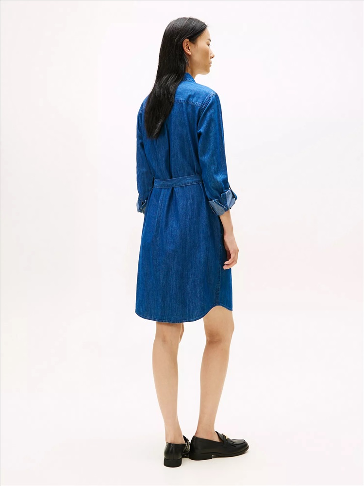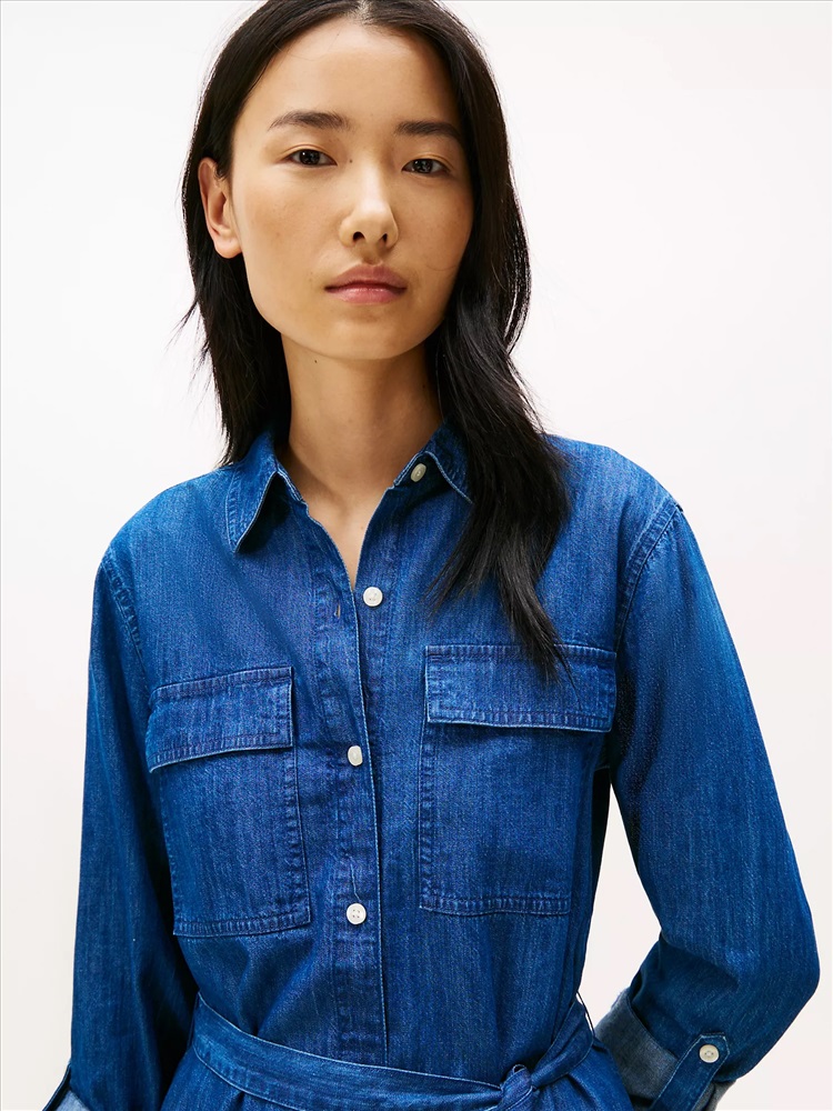 Tommy Hilfiger women's dress. Work-week dressing just got easier. Our structured, utility-inspired shirtdress features chest pockets and a belted waist. Made from smooth cotton-lyocell denim, this piece falls in a flattering drape.