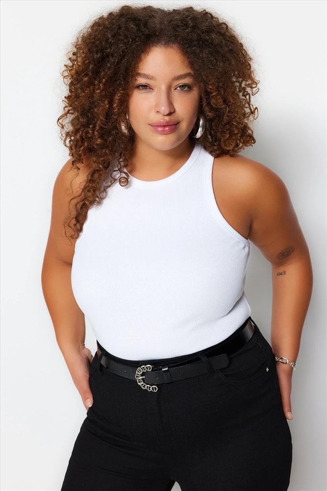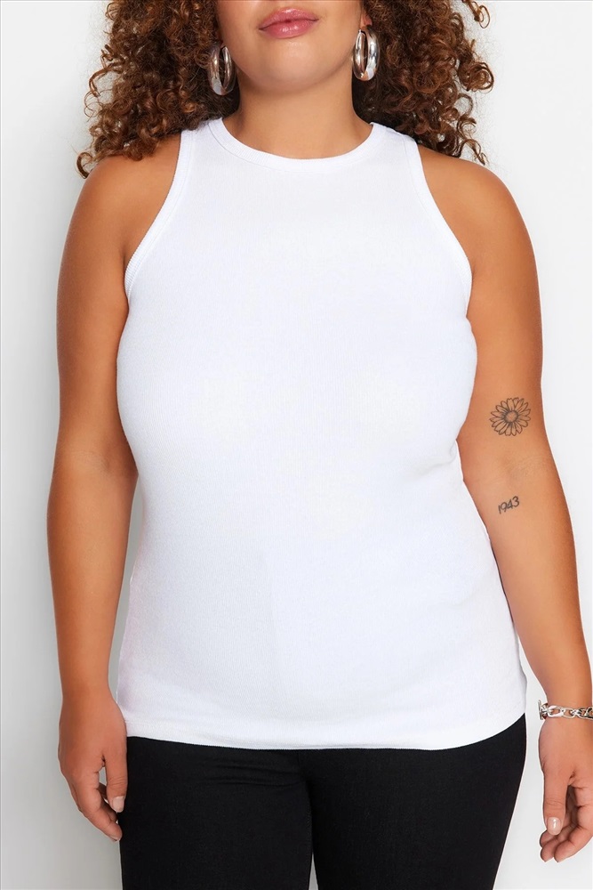 Beyaz Halter Yaka Pamuklu Fitted/Vücuda Oturan Basic Örme Atlet TBBSS23CV00001