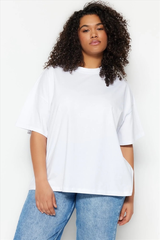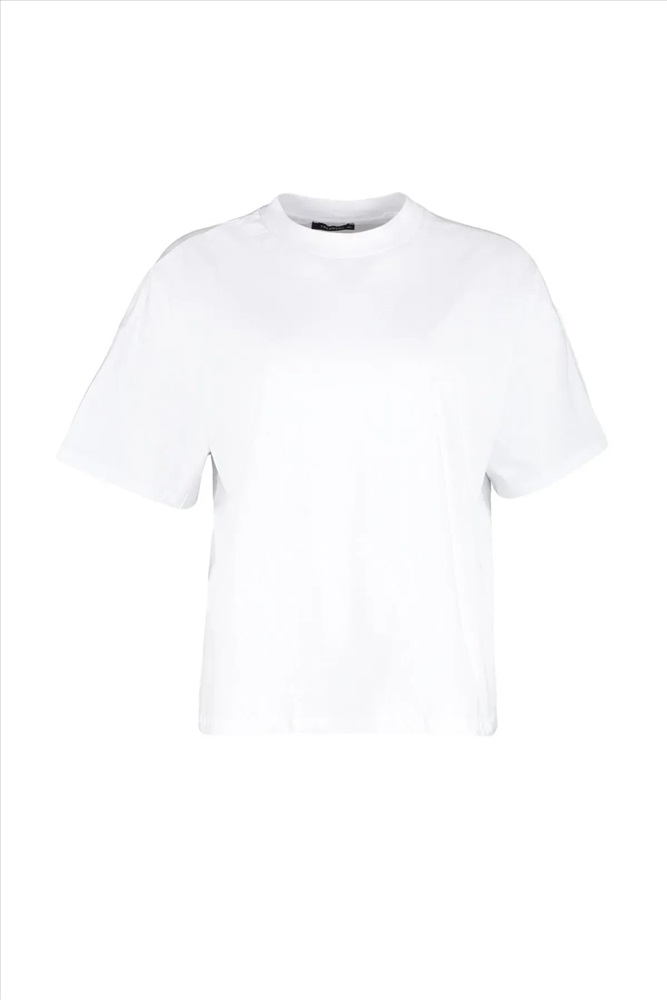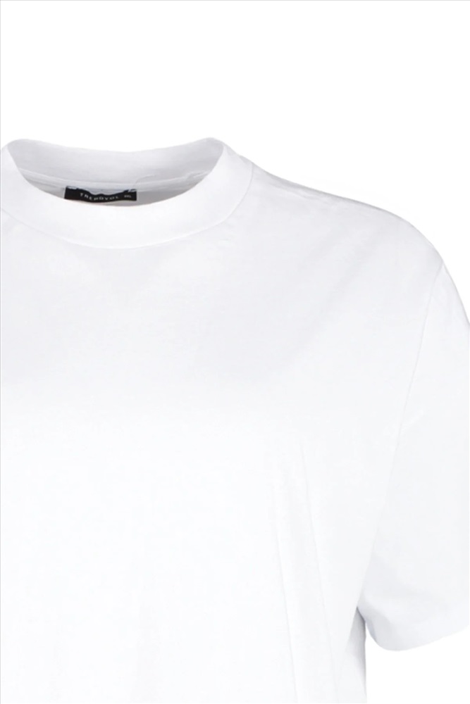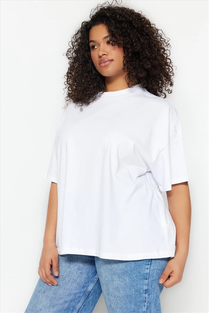 Beyaz Yaka Ribanalı Geniş Kalıp Basic %100 Pamuk Örme T-shirt TBBSS23BF00017