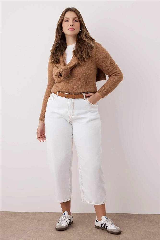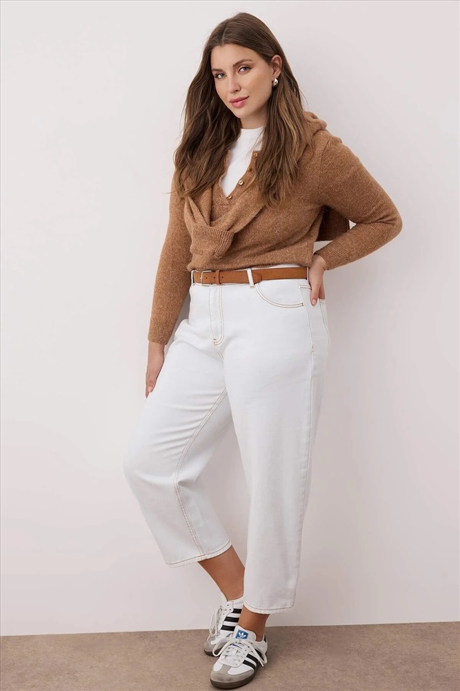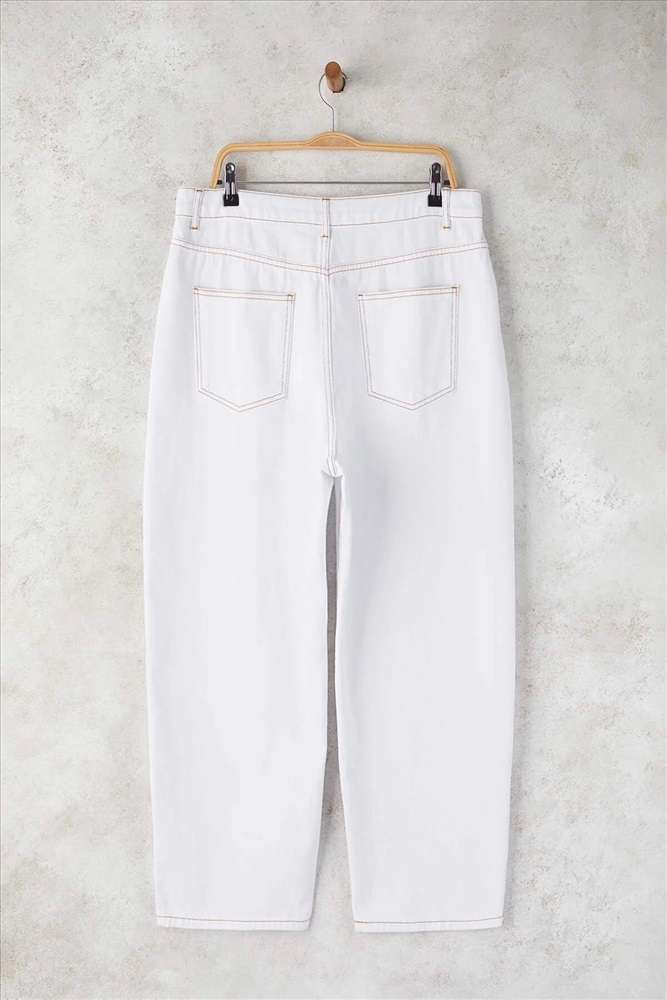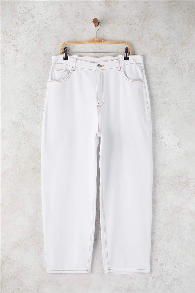Beyaz Yüksek Bel Büyük Beden Baggy Jeans TBBAW26CJ00046