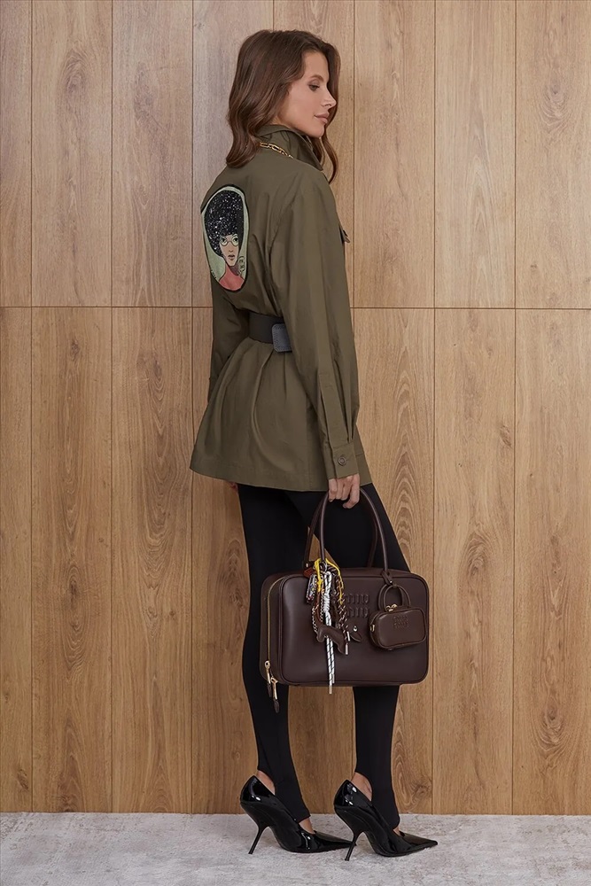 Рубашка прямого силуэта, длиной ниже бедра, выполнена в стиле милитари. Центральная застежка доверху на петли и пуговицы. Накладные фигурные карманы с клапанами на полочках изделия. Спущенная линия плеча, объемный рубашечный рукав. Рукав снизу на притачной манжете. Спинка прямая. На спине авторский принт “Я так вижу”. Рубашечный воротник на стойке. Комментарии к товару