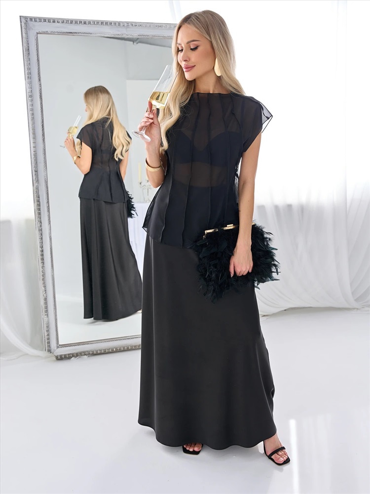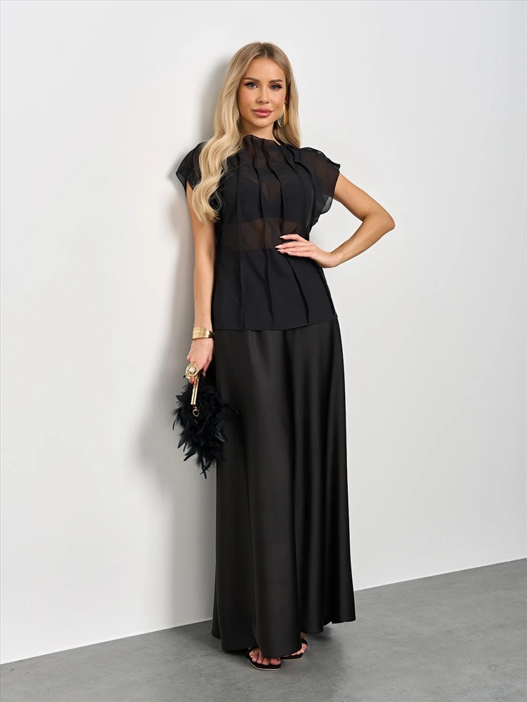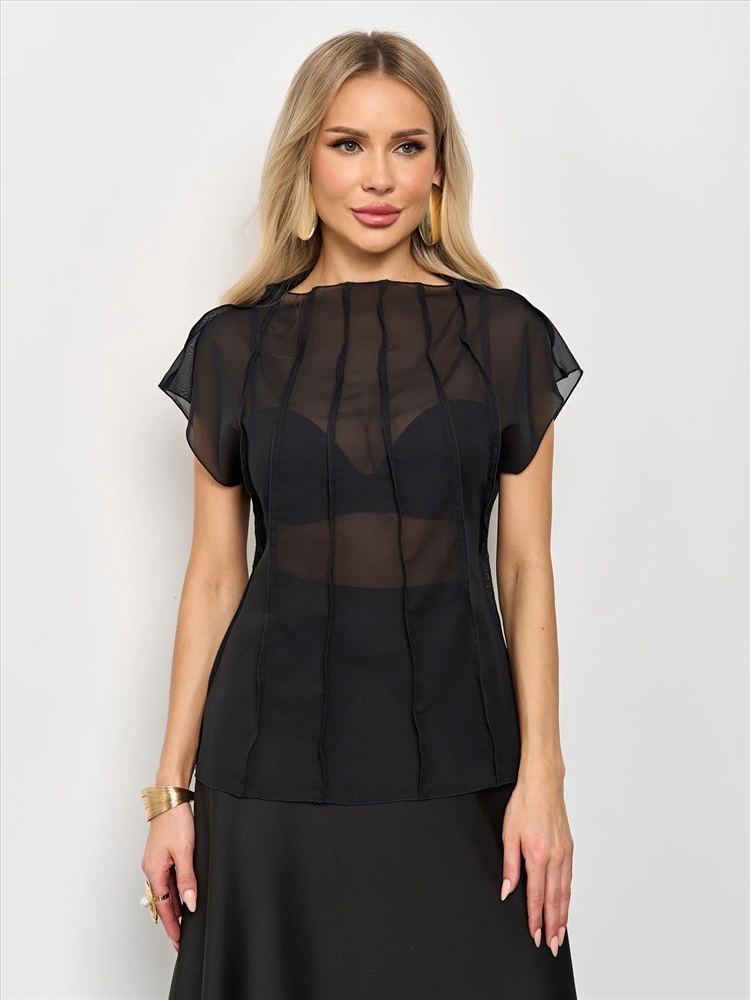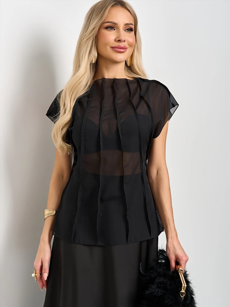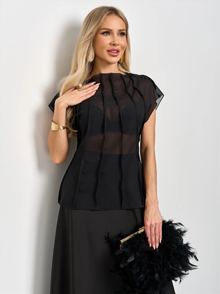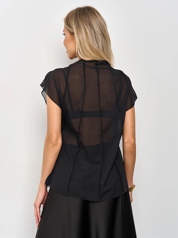 Блуза из шифона с декоративными вертикальными отстрочками по всему изделию.