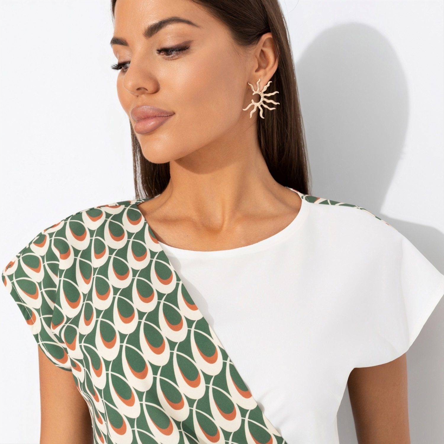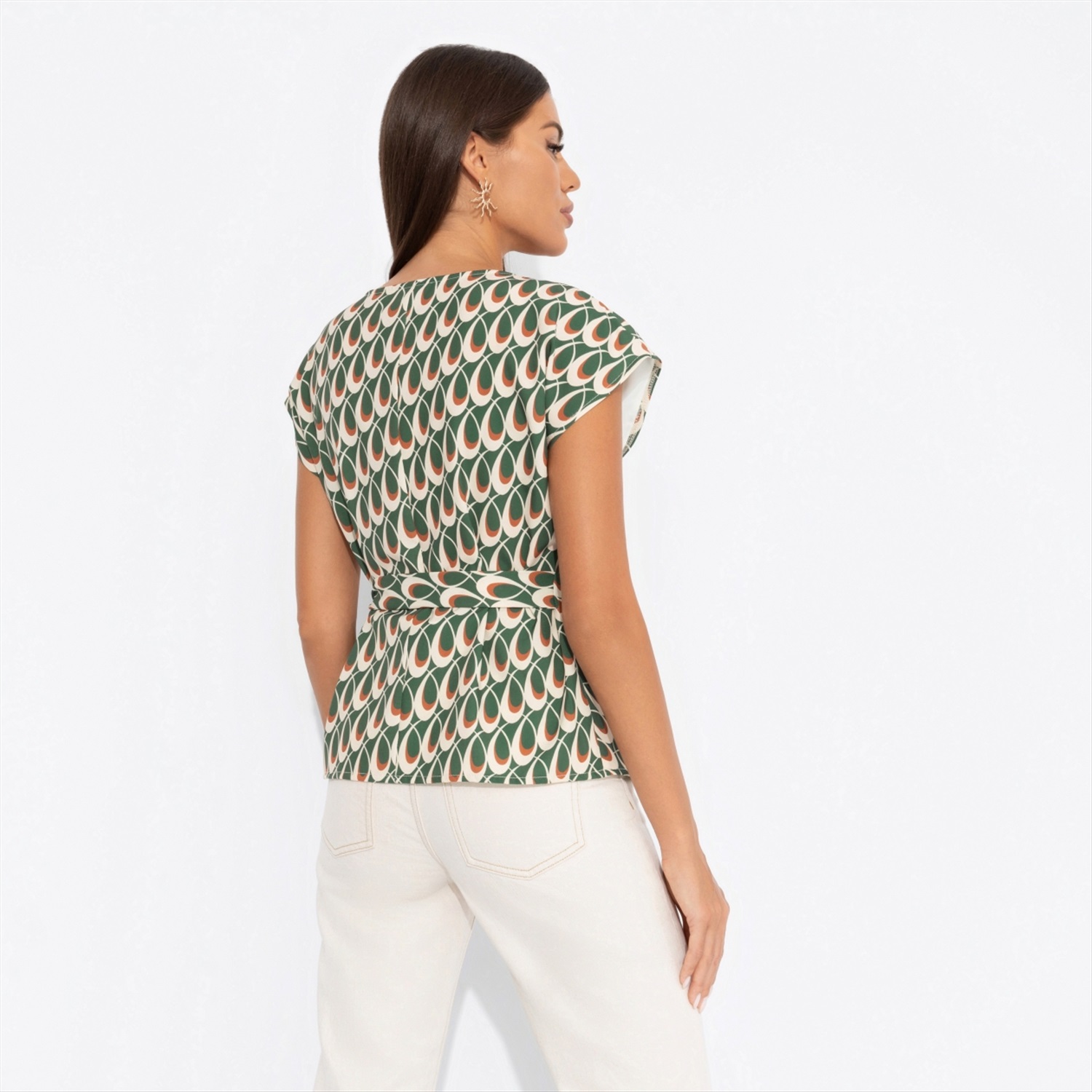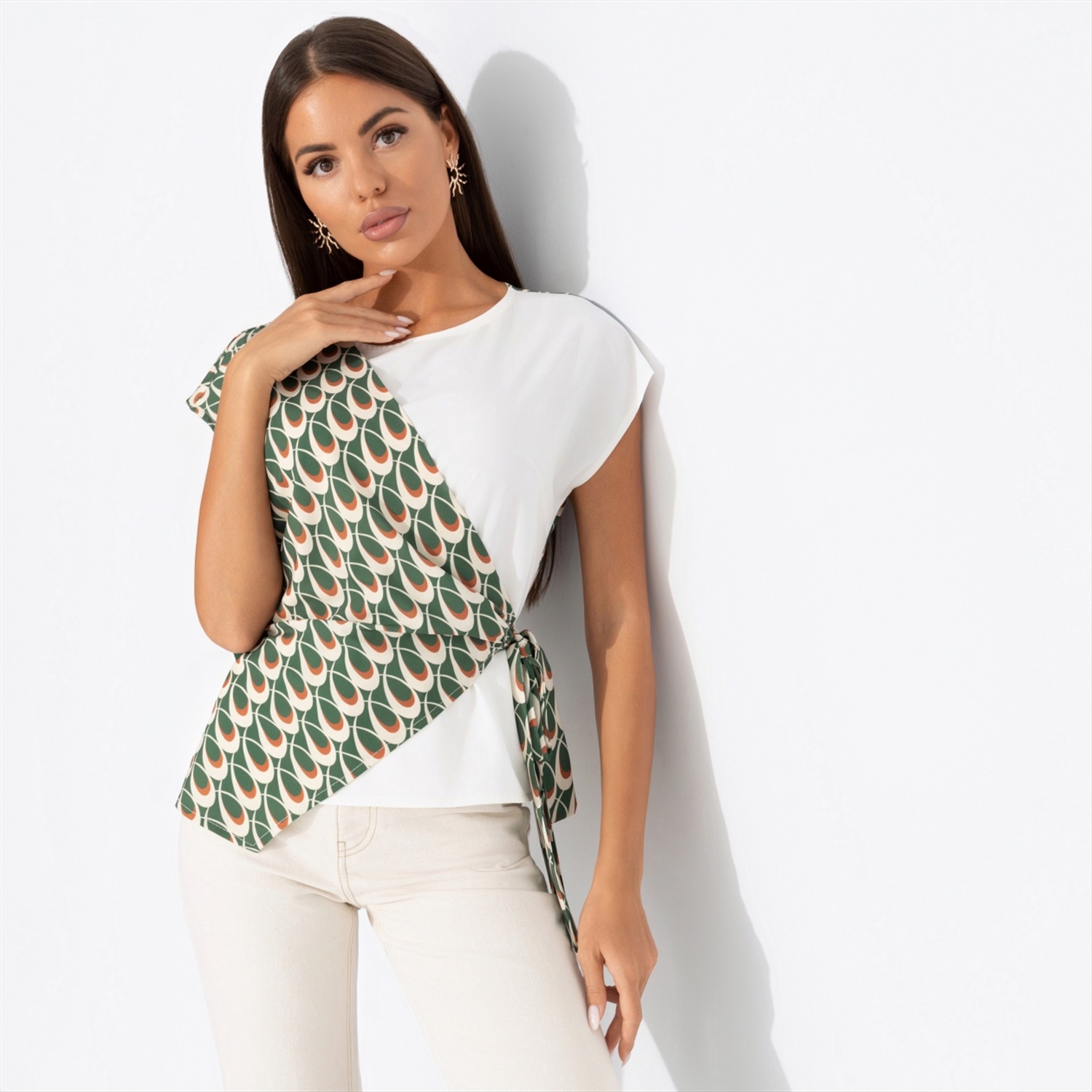 Состав: Ниагара (95% п/а, 5% эластан) Плотность ткани: Средняя Тип ткани: Текстиль Вид застежки: Завязки Декоративные элементы: Завязки Дополнительный цвет ткани: Белый Карманы: Нет Основной цвет ткани: Разноцветный Отрезная талия: Есть Подклад: Нет Резинка по талии: Есть Рисунок/раппорт: Каждое изделие уникально из-за расположения рисунка на ткани Сезон: Лето Силуэт: Приталенный Стиль: Повседневный Параметры модели на фото: