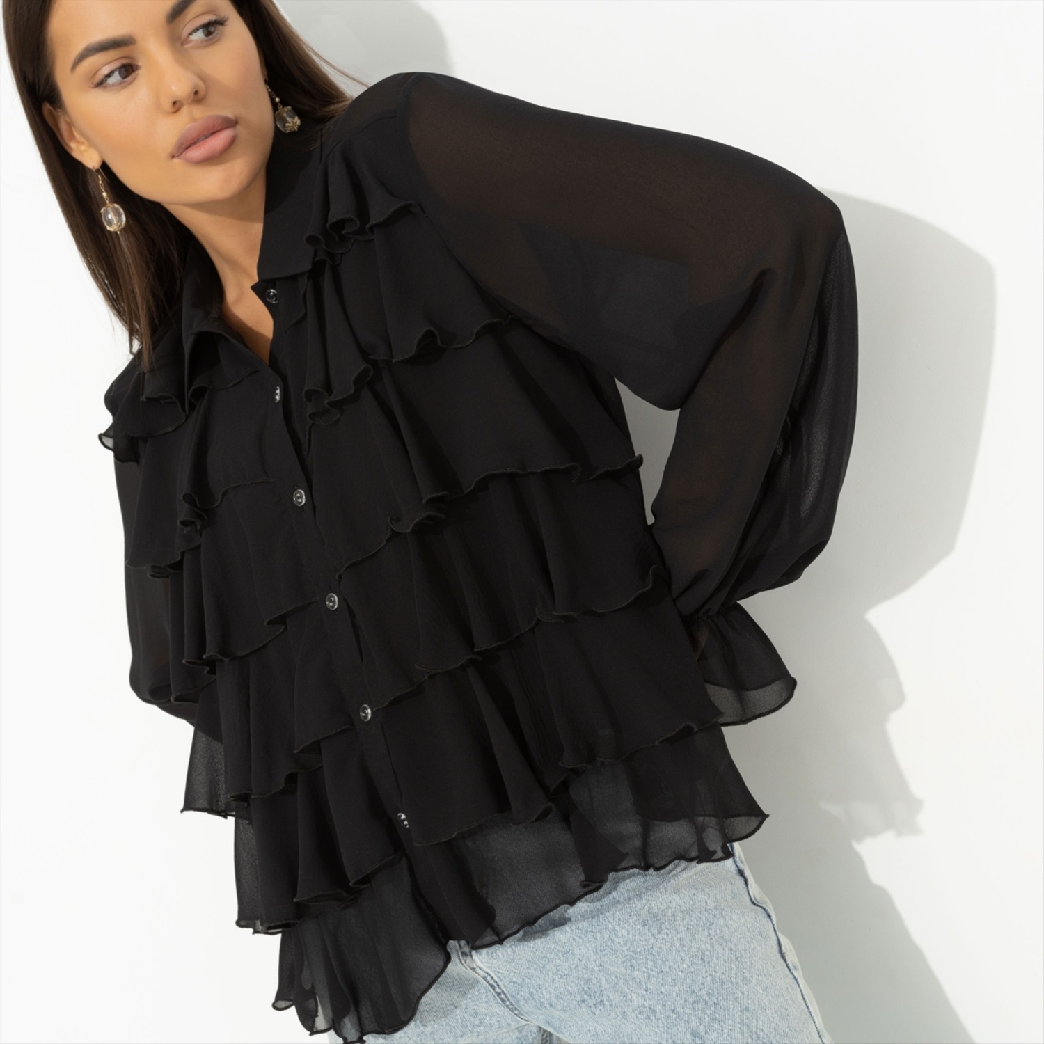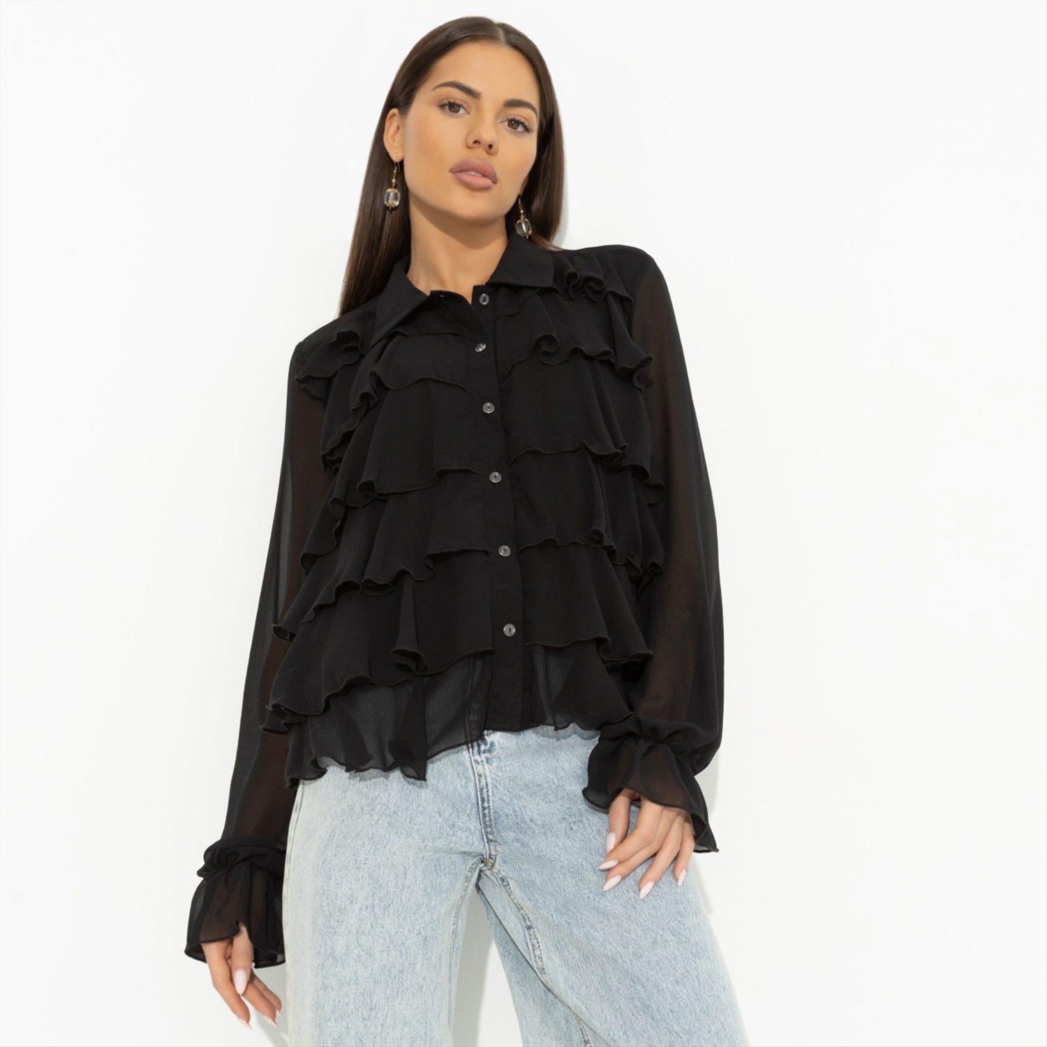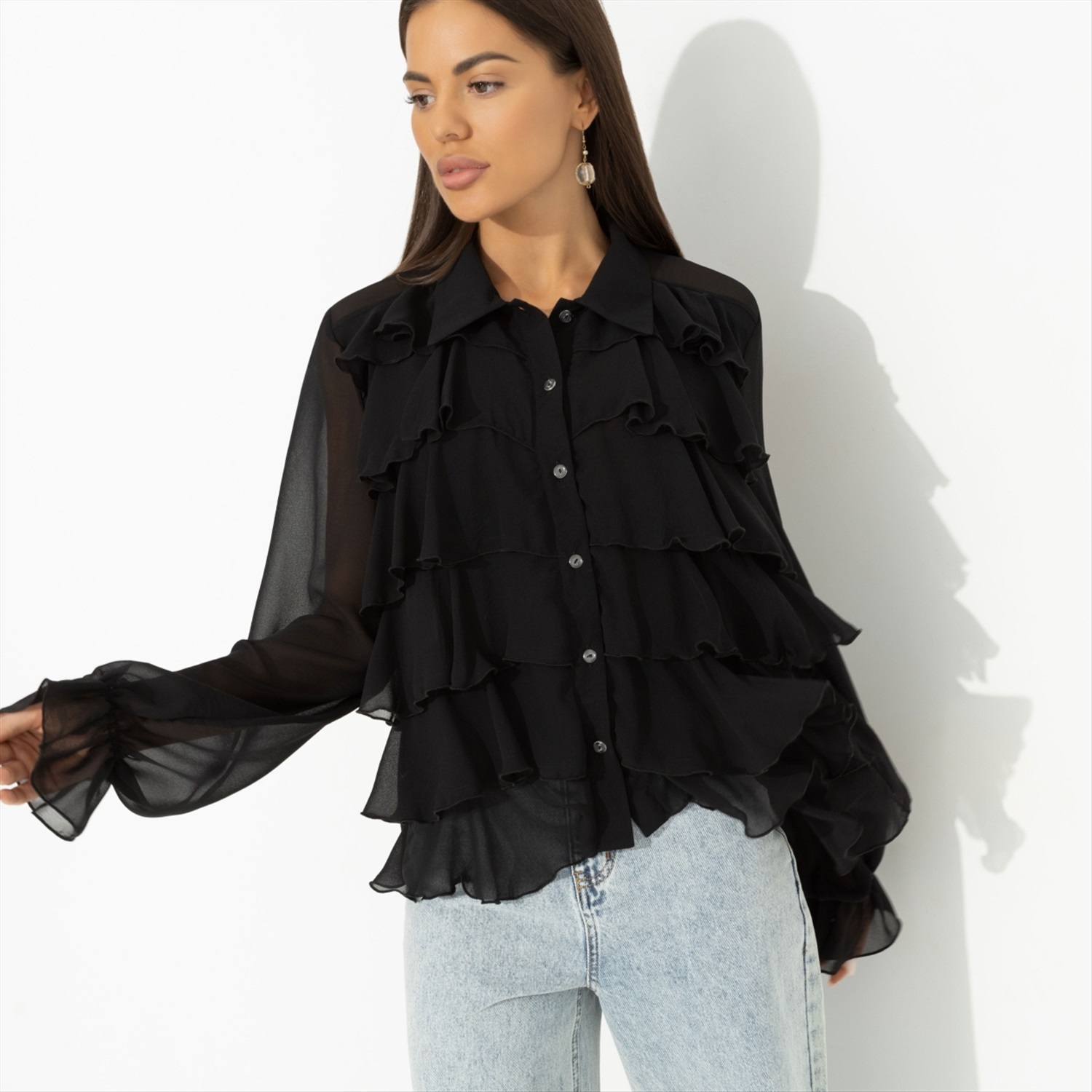 Блуза с объемным декором «Гипнотический стиль (черная)» из шифона — это воплощение изысканности и стиля, которое станет настоящим украшением вашего гардероба. Она создана для тех, кто ценит элегантность и стремится подчеркнуть свою индивидуальность. Легкая, слегка прозрачная ткань позволяет создать романтичный и загадочный образ, который привлекает внимание и оставляет неизгладимое впечатление. Рюши на передней части добавляют модели воздушности и игривости, делая её идеальной для вечернего выхода. Это женская блуза, которая станет незаменимым элементом любого нарядного ансамбля, подчеркивая вашу природную красоту. Вы ищете идеальную блузку для создания стильных и незабываемых образов? Тогда «Гипнотический стиль (черная)» — именно то, что вам нужно, особенно если вы хотите приобрести её оптом для вашего бутика или магазина. Эта женская блуза с длинным рукавом из шифона подходит для любого времени года, а её универсальный дизайн позволяет носить её как навыпуск, так и в заправленном виде. Благодаря тонкой резинке на рукавах, она обеспечивает комфорт на протяжении всего дня и при этом выглядит невероятно женственно. Блуза женская нарядная вечерняя — это ваше секретное оружие для создания потрясающих и запоминающихся образов. Представьте, как эта блузка женская нарядная вечерняя привнесет в вашу жизнь атмосферу особенного праздника каждый день. Особенно она подойдет для тех, кто ищет блузки женские больших размеров, сохраняя при этом стиль и утонченность. Оптом можно приобрести эту модель для создания целой коллекции, которая будет востребована среди клиенток, стремящихся выглядеть безупречно на любом мероприятии. Позвольте себе и вашим покупателям окунуться в мир утонченной моды с блузой «Гипнотический стиль (черная)», которая подчеркнет ваш уникальный стиль и добавит нотку загадочности в каждое мгновение. Комментарии к товару