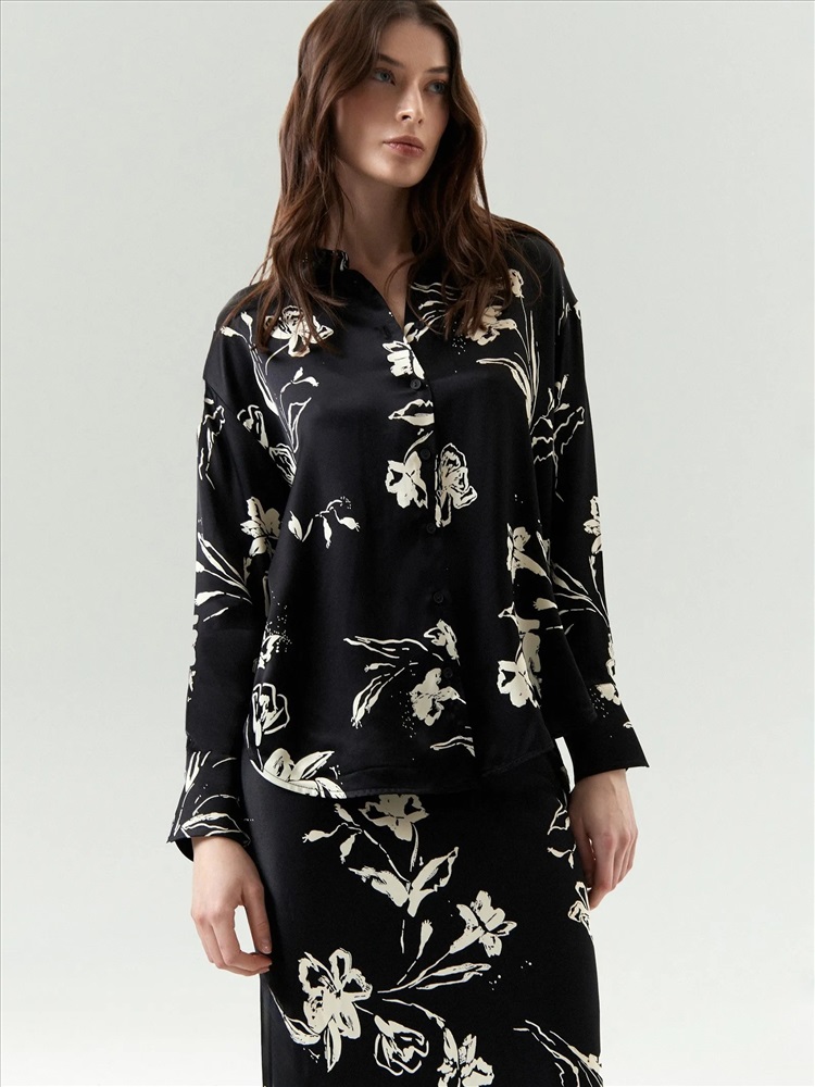 Нежная блузка из шелковистой вискозы украшена женственным принтом с цветочными мотивами. Она может стать идеальным выбором для выходного с заботой о себе, романтического вечера и любых личных планов. Дополнить образ можно юбкой из комплекта. Комплект приятен к телу и настраивает на размеренный, комфортный ритм, поэтому в таком образе лучше отложить все срочные дела и наслаждаться моментом.