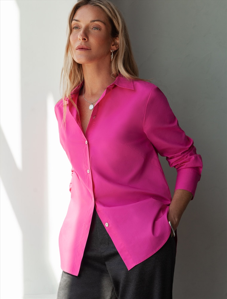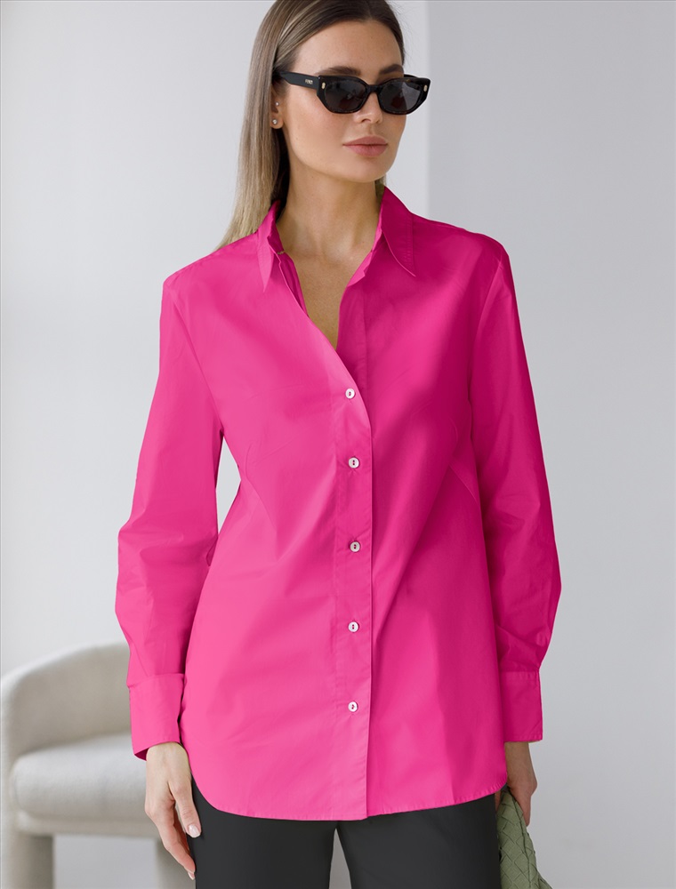 Блузка выполнена из премиального хлопкового поплина Лаконичная модель с высокими манжетами и пуговицами из натурального перламутра хорошо впишется в любой гардероб и внесет яркий летний акцент в образ. Натуральный состав ткани обладает высокой воздухопроницаемостью и гигроскопичностью. В изделии будет комфортно, даже в самое жаркое время года. Подходит для любой фигуры. На спинке фирменный логотип бренда.