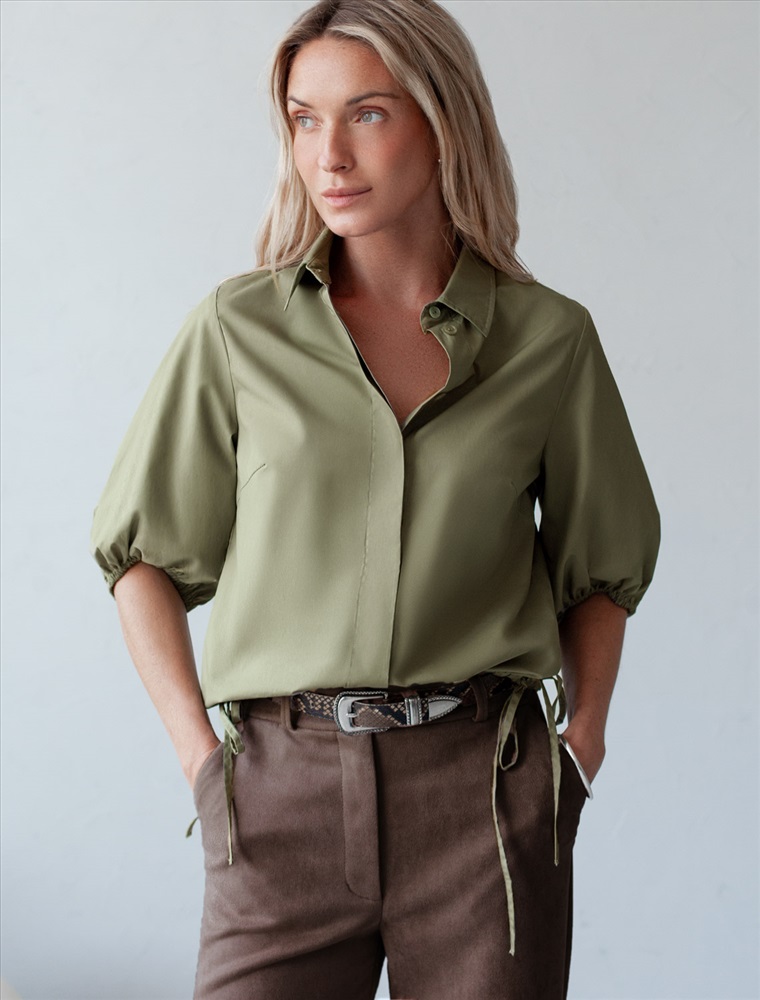 Параметры модели на первом фото: Рост 170, бюст 89, талия 63, бедра 92 Размер товара на первом фото: 42 Укороченная блузка с пышными рукавами-фонариками выполнена из легкого хлопкового поплина. Супатная застежка на пуговицы из натурального перламутра. Внизу кулиса с лентами из основного полотна. В изделии будет комфортно, даже в самое жаркое время года. Подходит для любой фигуры. Сочетается в костюме с кюлотами D24.233 и юбкой D26.179 Комментарии к товару