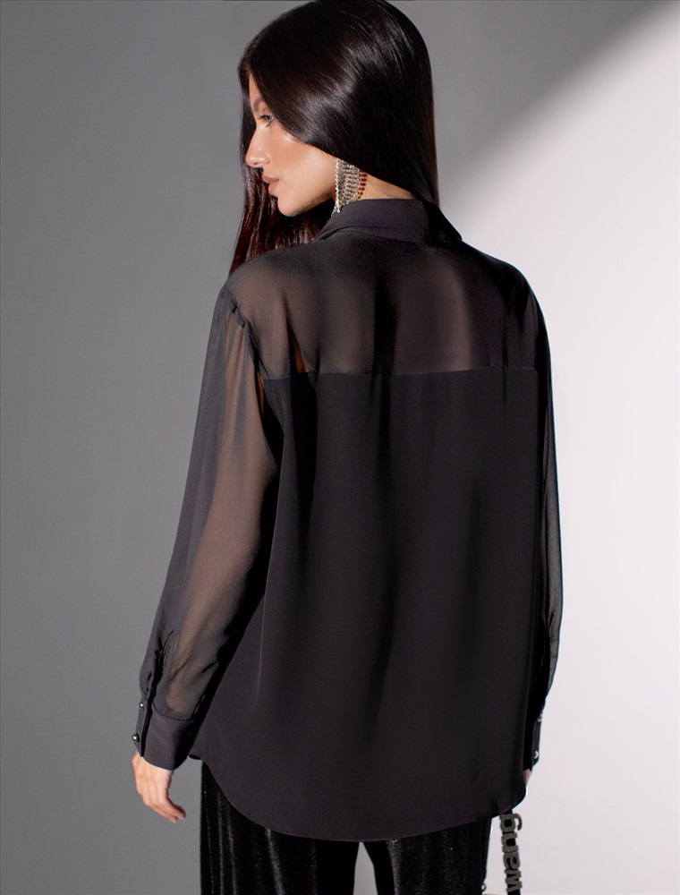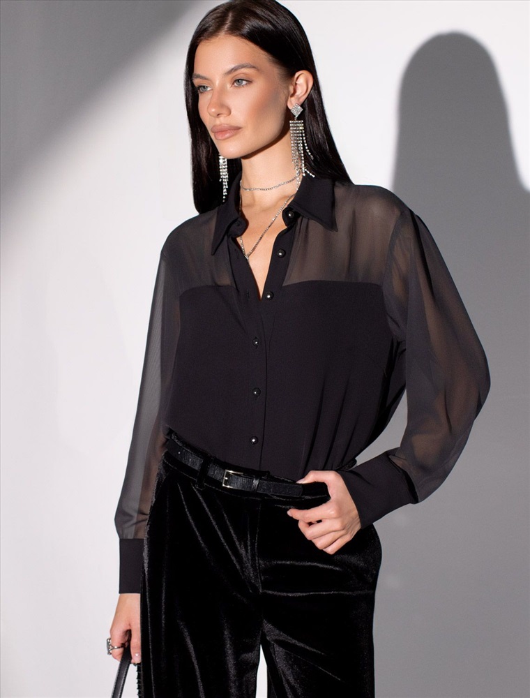 Плотность: 250 Г/м2 Элегантная блузка черного цвета создана для женщин, которые ценят стиль и комфорт каждый день. Полупрозрачный шифон в верхней части блузки придает образу легкость и утонченность, подчеркивая индивидуальность в любой ситуации. Такая нарядная блузка моментально преобразит повседневный лук, делая его более выразительным и женственным. Плотная ткань блузки красиво струится по фигуре, подчеркивая женственность. Оригинальный крой и продуманная отделка позволяют сочетать блузку с брюками, юбками или джинсами — вы всегда будете выглядеть свежо и современно. Текстура ткани обеспечивает максимальное удобство, а полупрозрачная структура добавляет загадочности без излишней откровенности. Стильная модель подходит как для деловых встреч, так и для прогулок по городу или вечерних мероприятий. Благодаря универсальности фасона легко создаются новые комбинации в зависимости от настроения и случая. Комментарии к товару