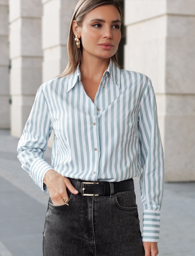 Блузка свободного силуэта с золотистыми пуговицами