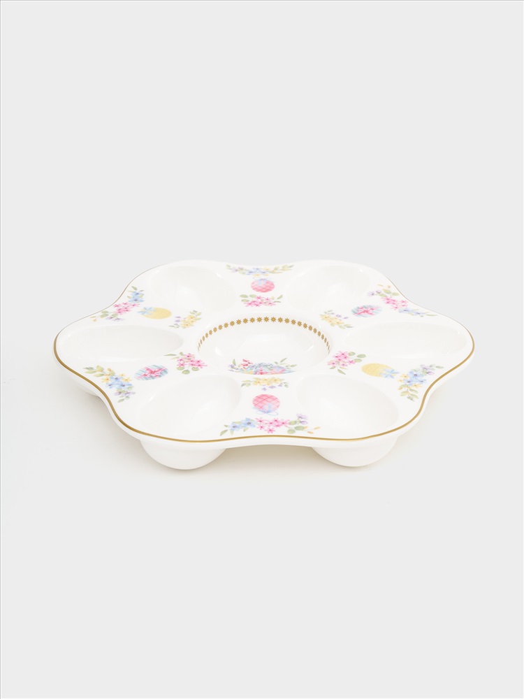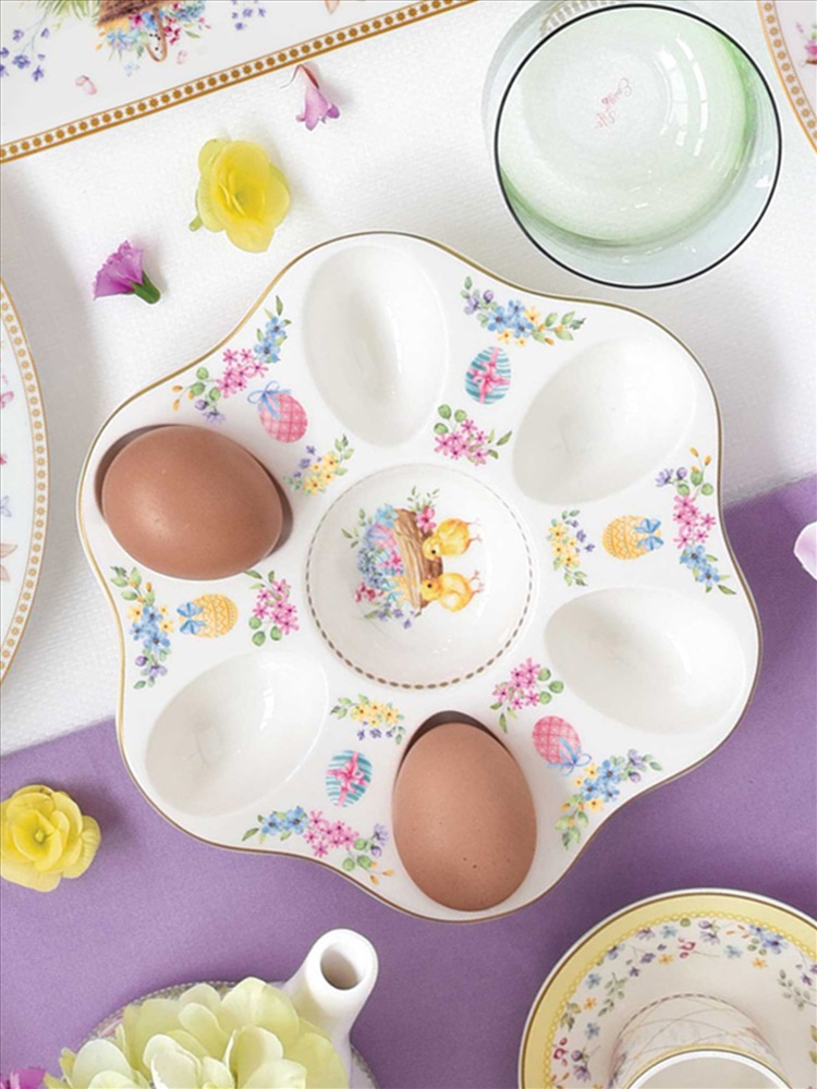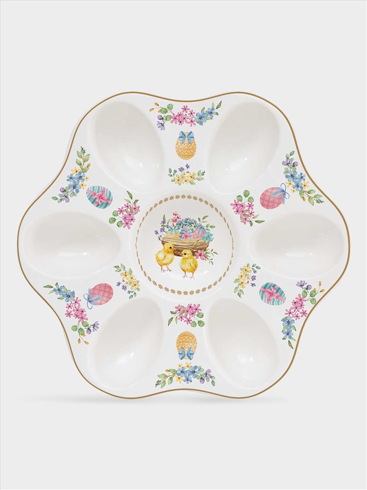 Бренд: EASY LIFE Коллекция: ПАСХАЛЬНАЯ Блюдо для яиц, 21 см, 6 отд, фарфор P, белое, Цыплята и цветы, Spring Bloom. Материал: фарфор Рorcelain. Мыть тёплой водой с применением жидких моющих средств и в посудомоечной машине. Можно использовать в СВЧ.