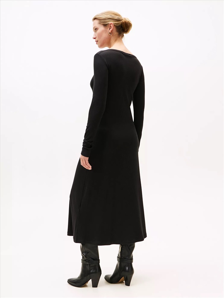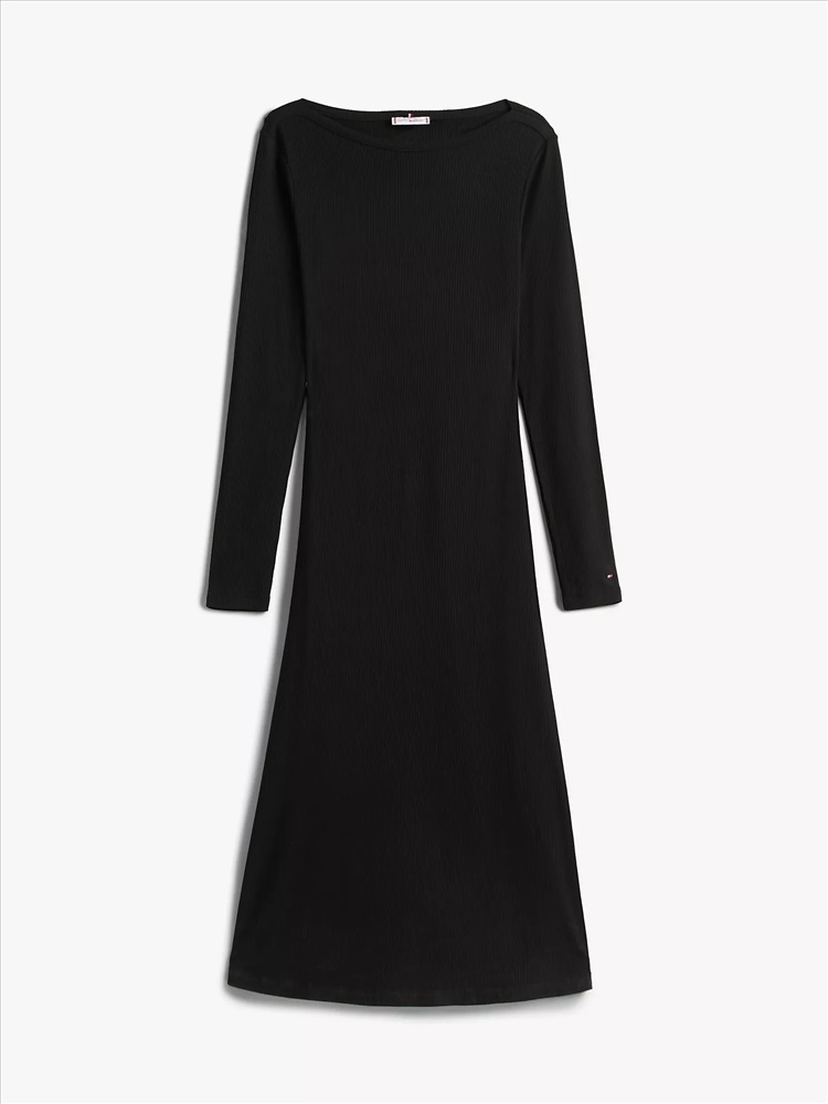 Boatneck Rib-Knit Midi Dress