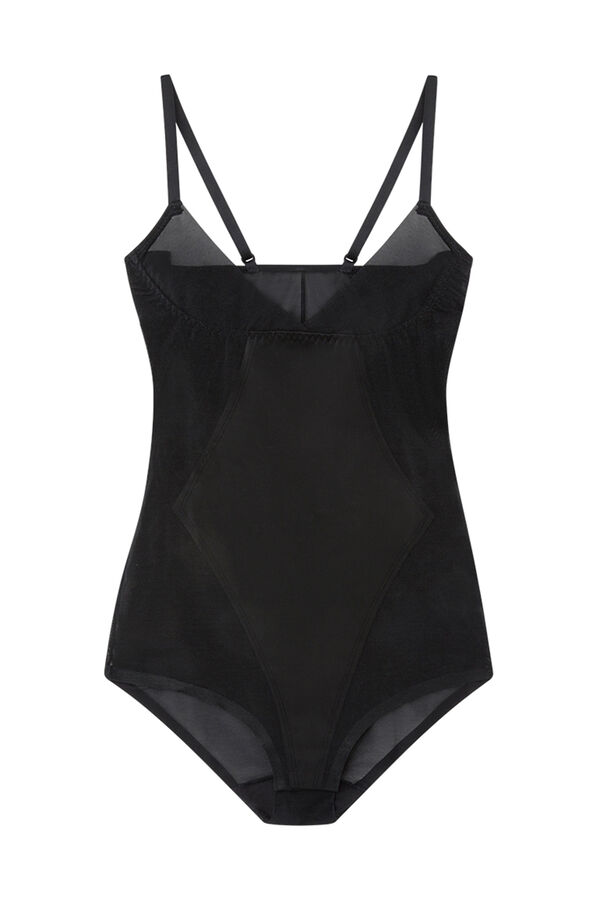 Body moldeador de un cómodo y suave tul de color negro. Línea que realza y estiliza tu cuerpo con tejidos suaves de la más alta calidad (LYCRA®). Sin copas, esta pieza es ideal para lucirla bajo tus prendas más pegaditas. ¡Siéntete guapa, cómoda y sexy a todas horas!