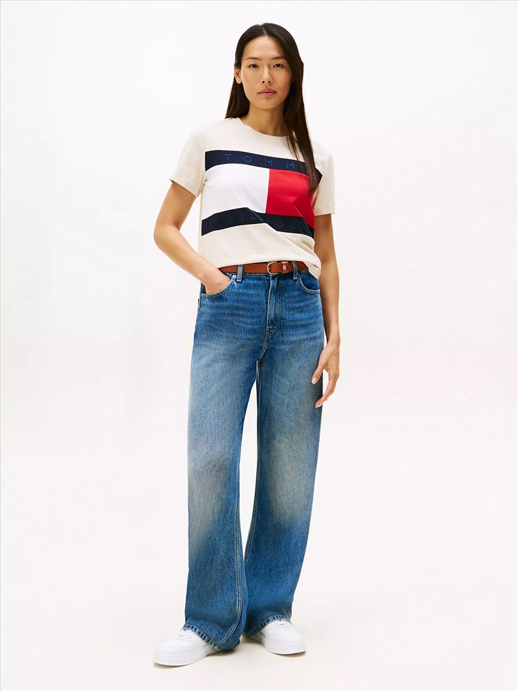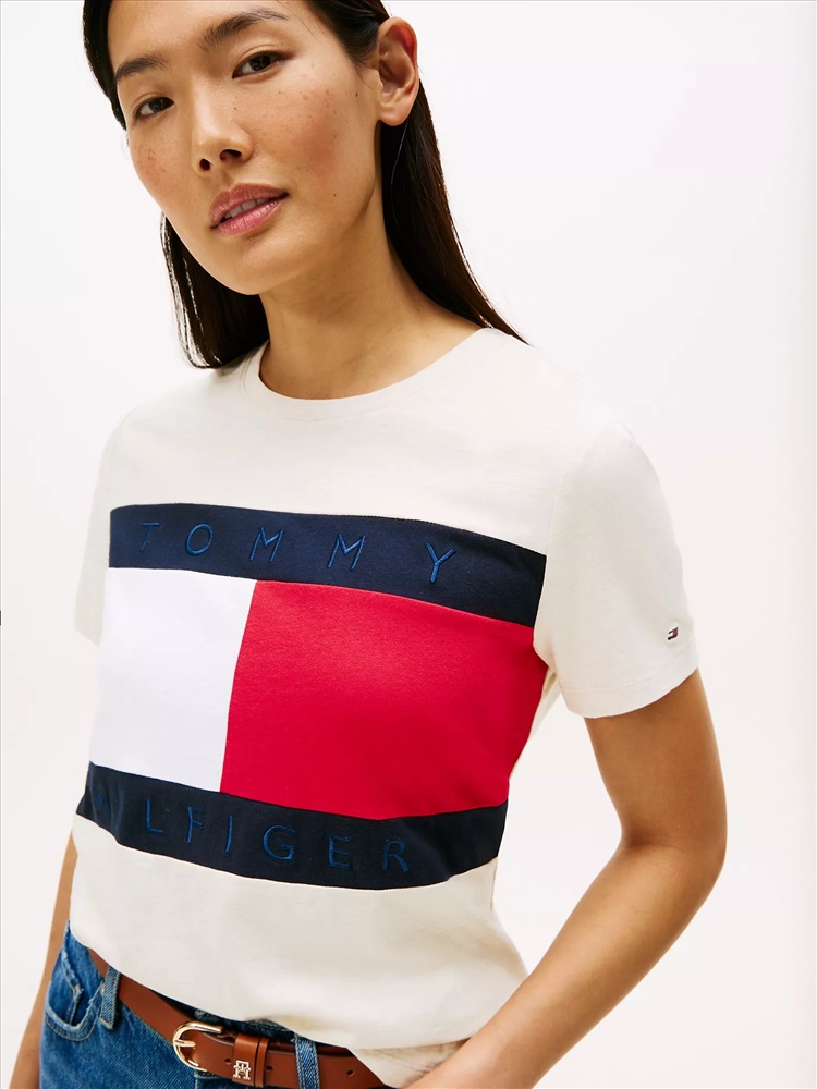 Tommy Hilfiger women's T-shirt. Our classic crewneck tee features a bold take on our flag logo. Made from soft, medium-weight cotton, it's a breathable, comfortable layer.