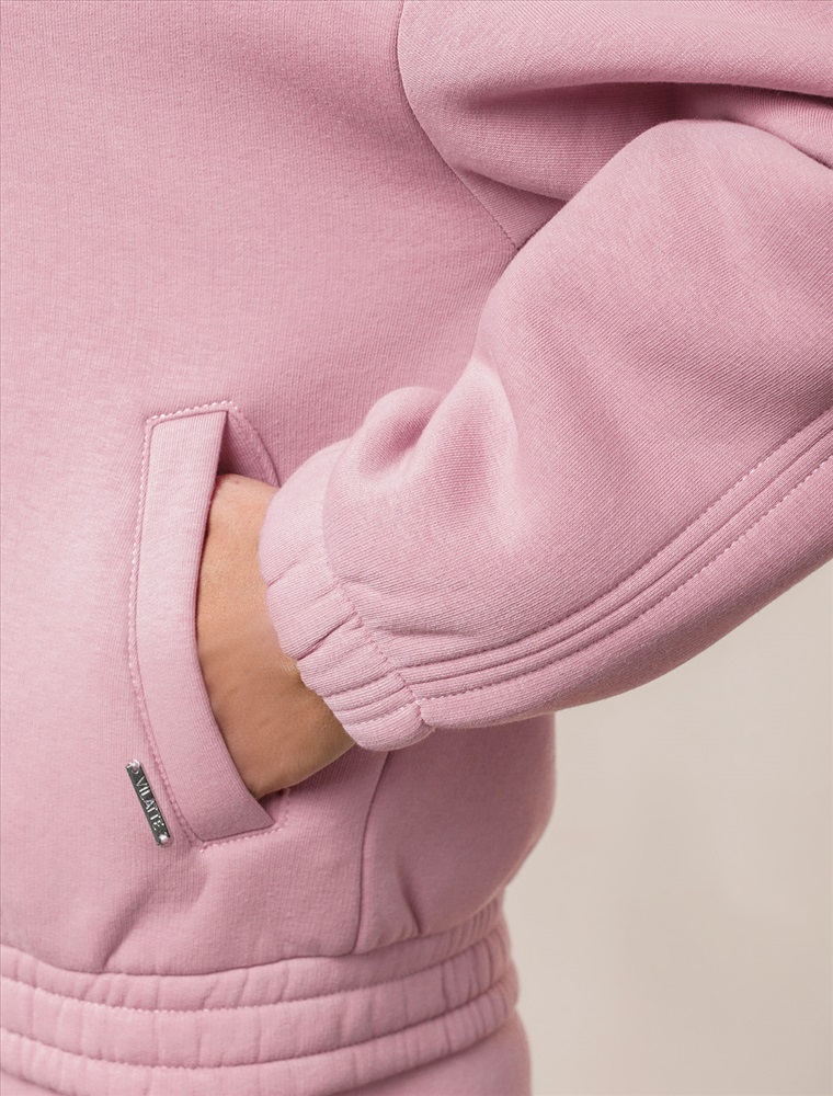 Размер товара на первом фото: 42 Теплый бомбер пыльно-розового цвета на молнии из футера трехнитки с начесом создан для максимального комфорта в любую погоду. Благодаря натуральному материалу и внутреннему мягкому начесу, повседневный бомбер приятно прилегает к телу и сохраняет тепло даже в прохладные дни. Серебристая фурнитура придает современный акцент, а воротник-стойка защищает от ветра и дополняет стильный внешний вид. Манжеты на рукавах и резинка по низу обеспечивают хорошую посадку по фигуре, предотвращая проникновение холода. Карманы позволяют удобно разместить необходимые мелочи или согреть руки во время прогулок. Спортивный бомбер отличается прочностью ткани, не теряет форму после стирки и долго сохраняет аккуратный первоначальный внешний вид. Модель отличается спущенной линией плеча, что обеспечивает удобную посадку и подчеркивает естественные контуры тела. Свободная толстовка на молнии подходит для любых размеров, отлично смотрится на большие параметры, подчеркивая достоинства фигуры. Комфортная длина делает образ более элегантным и универсальным — такой вариант легко комбинируется как с повседневной классической одеждой, так и со спортивными брюками D44.149 и D44.151. Подходит как для прогулок по городу, так и для активного отдыха, универсальный фасон этой кофты делает ее незаменимой в гардеробе любой женщины вне зависимости от сезона или трендов моды. Комментарии к товару