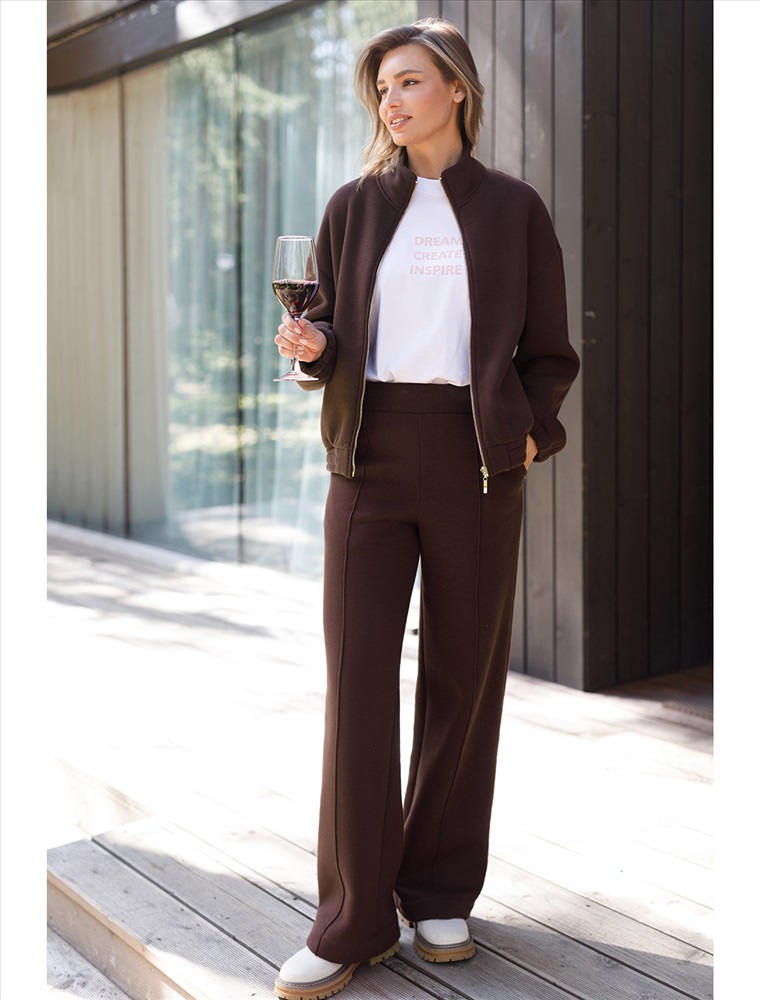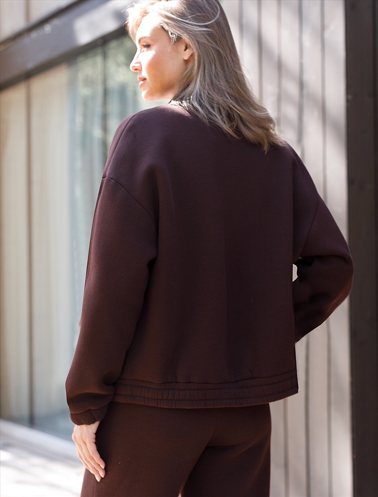 Теплый бомбер коричневого цвета на молнии из футера трехнитки с начесом создан для максимального комфорта в любую погоду. Благодаря натуральному материалу и внутреннему мягкому начесу, повседневный бомбер приятно прилегает к телу и сохраняет тепло даже в прохладные дни. Серебристая фурнитура придает современный акцент, а воротник-стойка защищает от ветра и дополняет стильный внешний вид. Манжеты на рукавах и резинка по низу обеспечивают хорошую посадку по фигуре, предотвращая проникновение холода. Карманы позволяют удобно разместить необходимые мелочи или согреть руки во время прогулок. Спортивный бомбер отличается прочностью ткани, не теряет форму после стирки и долго сохраняет аккуратный первоначальный внешний вид. Модель отличается спущенной линией плеча, что обеспечивает удобную посадку и подчеркивает естественные контуры тела.