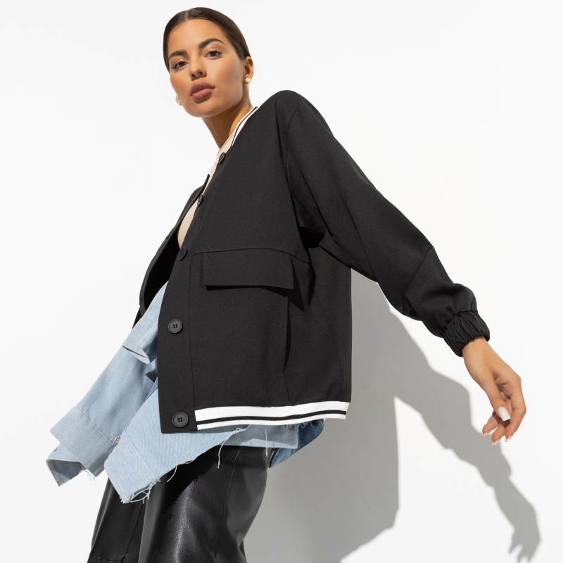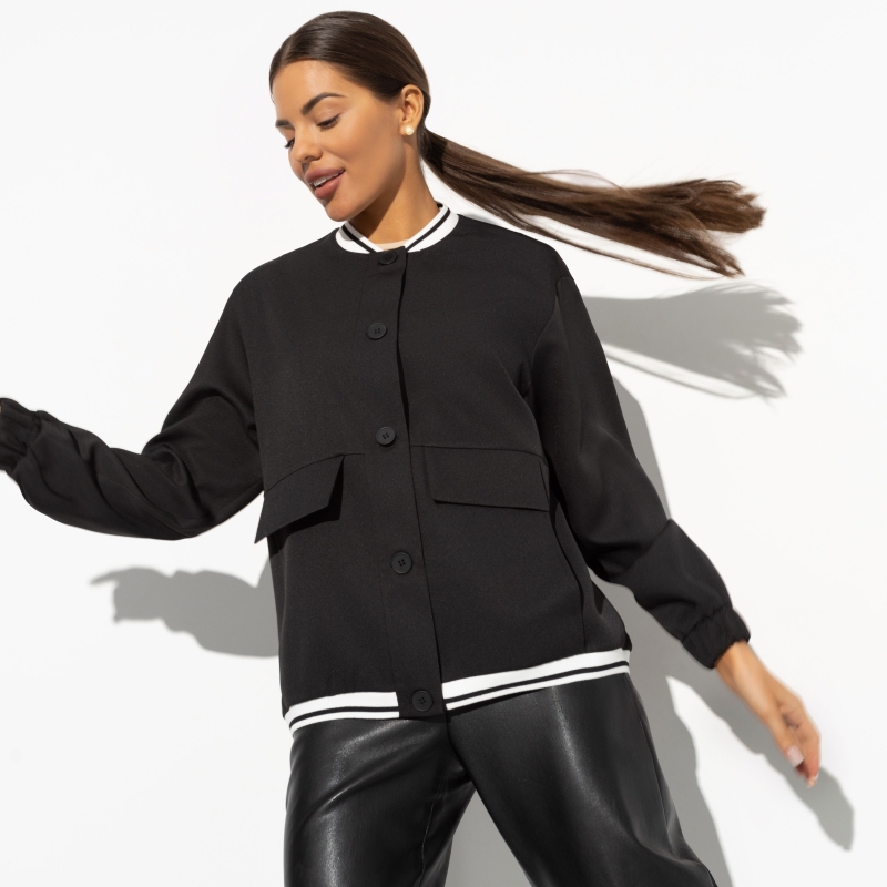 Бомбер «Бунтарка» от CHARUTTI — это идеальное сочетание дерзости и элегантности. Изготовленный из высококачественной поливискозы, состоящей на 67% из полиэстера, на 30% из вискозы и на 3% из спандекса, он сочетает в себе прочность и мягкость. Свободный крой и застежка на крупные пуговицы делают этот бомбер стильным и удобным выбором для любого случая. Рукава оформлены резинкой, что добавляет изделию современный вид и удобство. Наличие подкладки обеспечивает дополнительный комфорт. Заказывая этот бомбер оптом, вы получаете возможность предложить своим клиентам уникальный продукт, который станет хитом продаж. Этот бомбер — настоящее произведение искусства, воплощающее баланс эстетики в каждой детали. Его можно носить как с повседневной, так и с более формальной одеждой, создавая при этом стильный и современный образ. Поливискоза, из которой изготовлен бомбер, обеспечивает отличную воздухопроницаемость и долговечность, что делает его идеальным выбором для любой погоды. Заказывая этот бомбер оптом, вы сможете удовлетворить спрос на модную и качественную одежду среди своих клиентов. Бомбер «Бунтарка» станет незаменимой частью гардероба ваших клиентов. Его универсальный дизайн позволяет легко сочетать его с различными элементами одежды, создавая как повседневные, так и более официальные образы. Крупные пуговицы и резинка на рукавах придают бомберу современный и стильный вид, который привлечет внимание и подчеркнет индивидуальность. Заказывая оптом, вы получаете возможность предложить своим клиентам модный и востребованный продукт, который будет пользоваться популярностью.