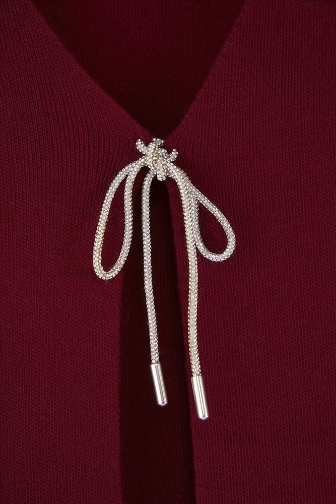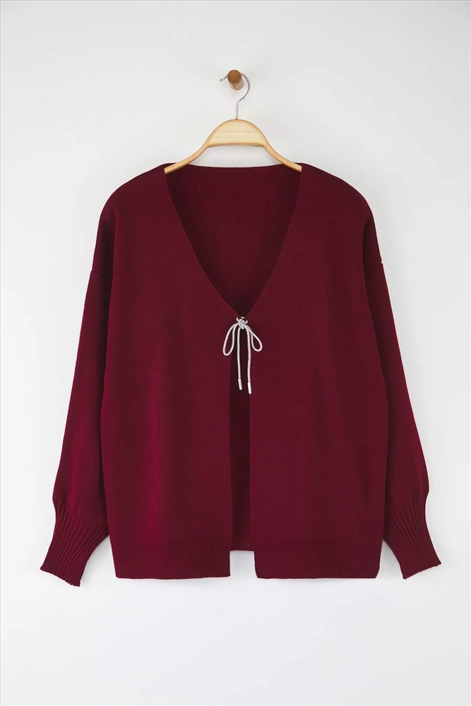 Bordo Fiyonk/Kurdele Detaylı Triko Hırka TBBAW26AV00011