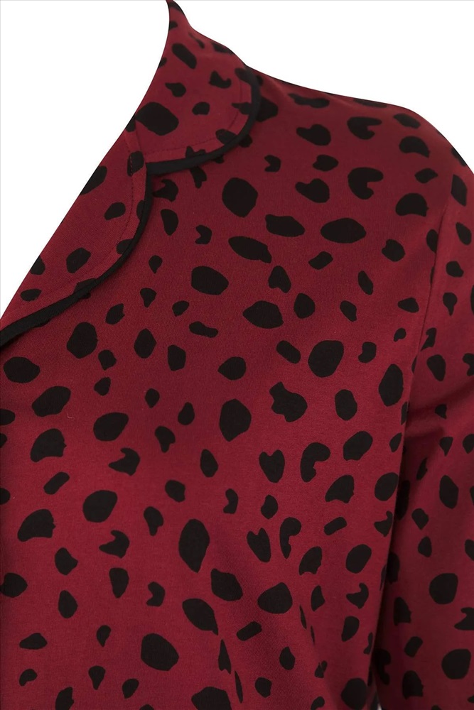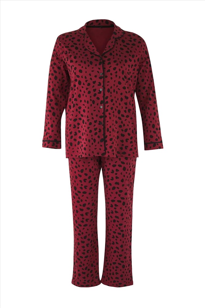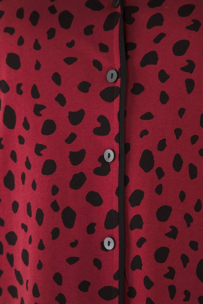 Bordo Kalpli Gömlek Yaka Örme Pijama Takımı TBBAW23AI00015