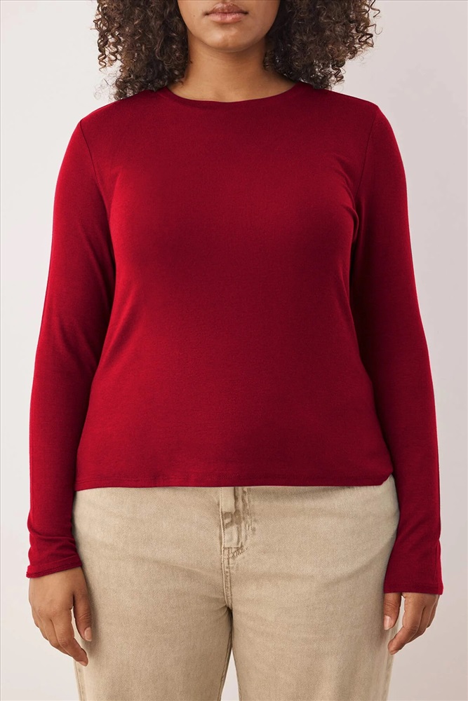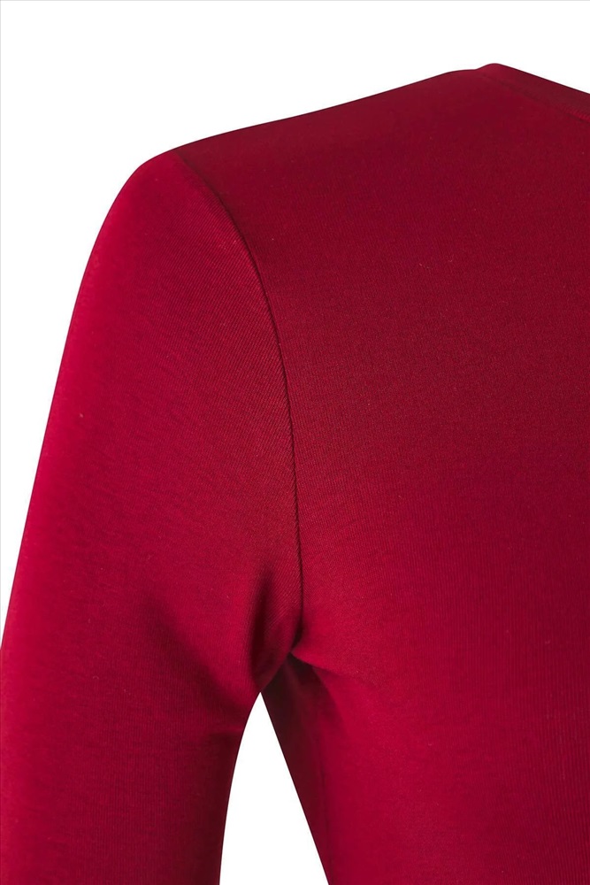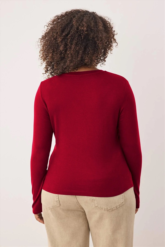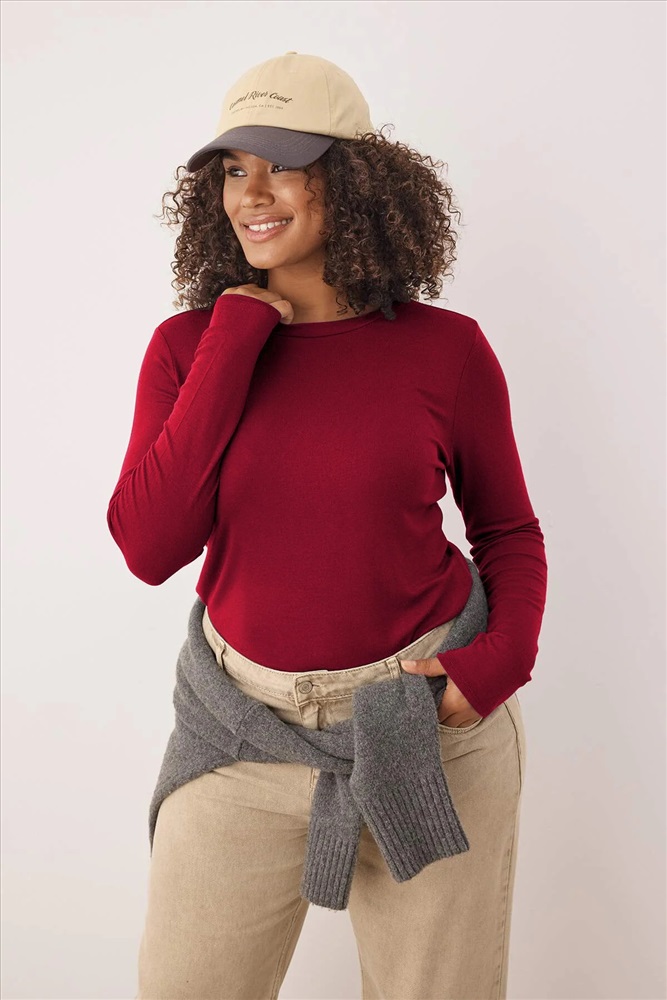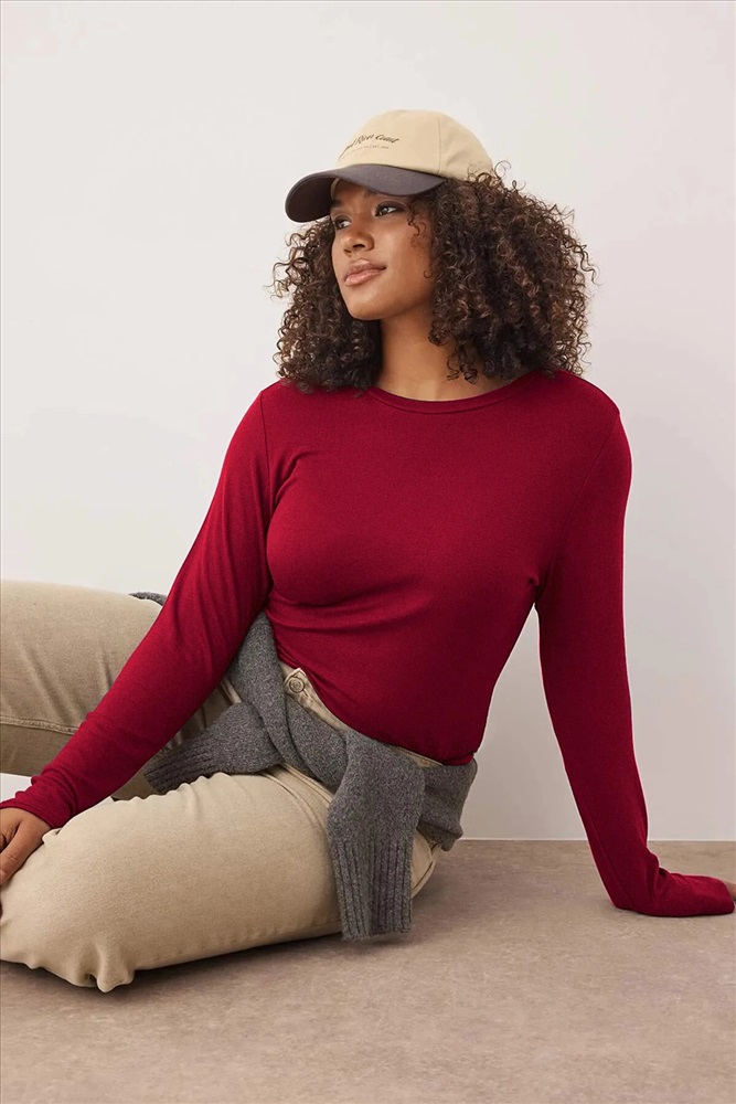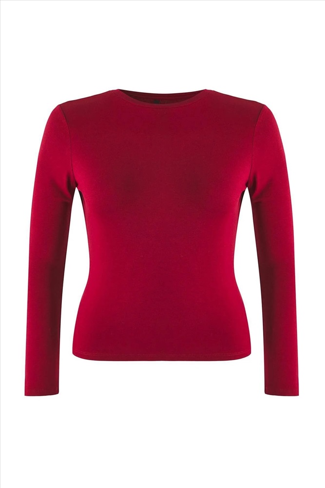 Bordo Premium Yumuşak Kumaşlı Viskon Bisiklet Yaka Crop Esnek Örme Bluz TBBAW25AF00027