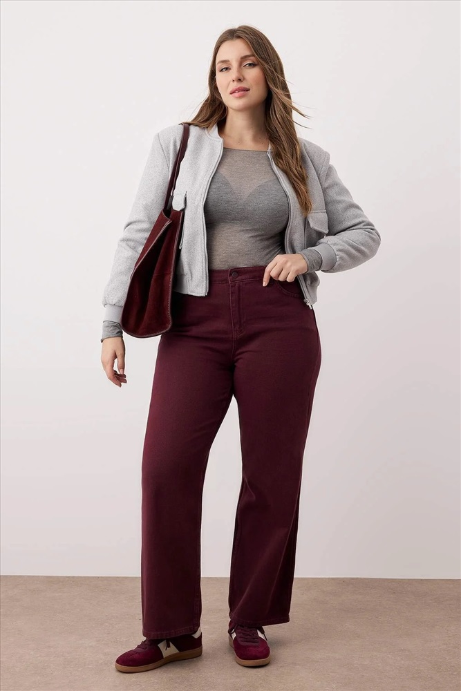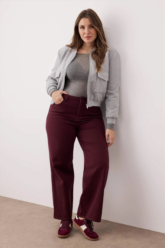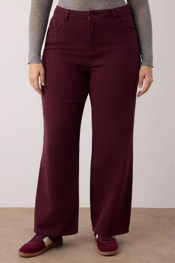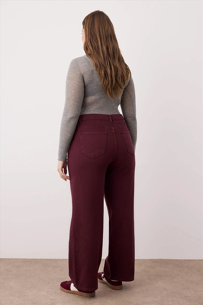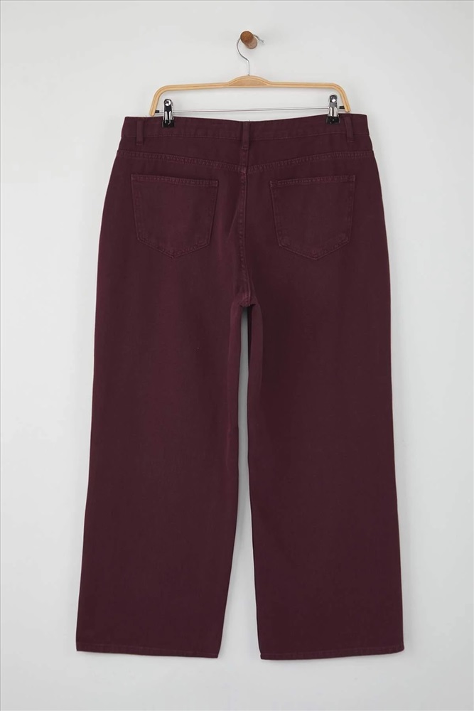Bordo Yüksek Bel Geniş Paça Büyük Beden Wide Leg Jeans TBBSS24CJ00050