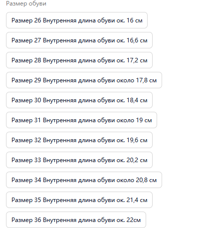 Размер: 26, 27, 28, 29, 30, 31, 32, 33, 34, 35, 36