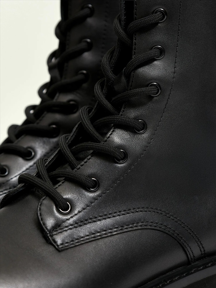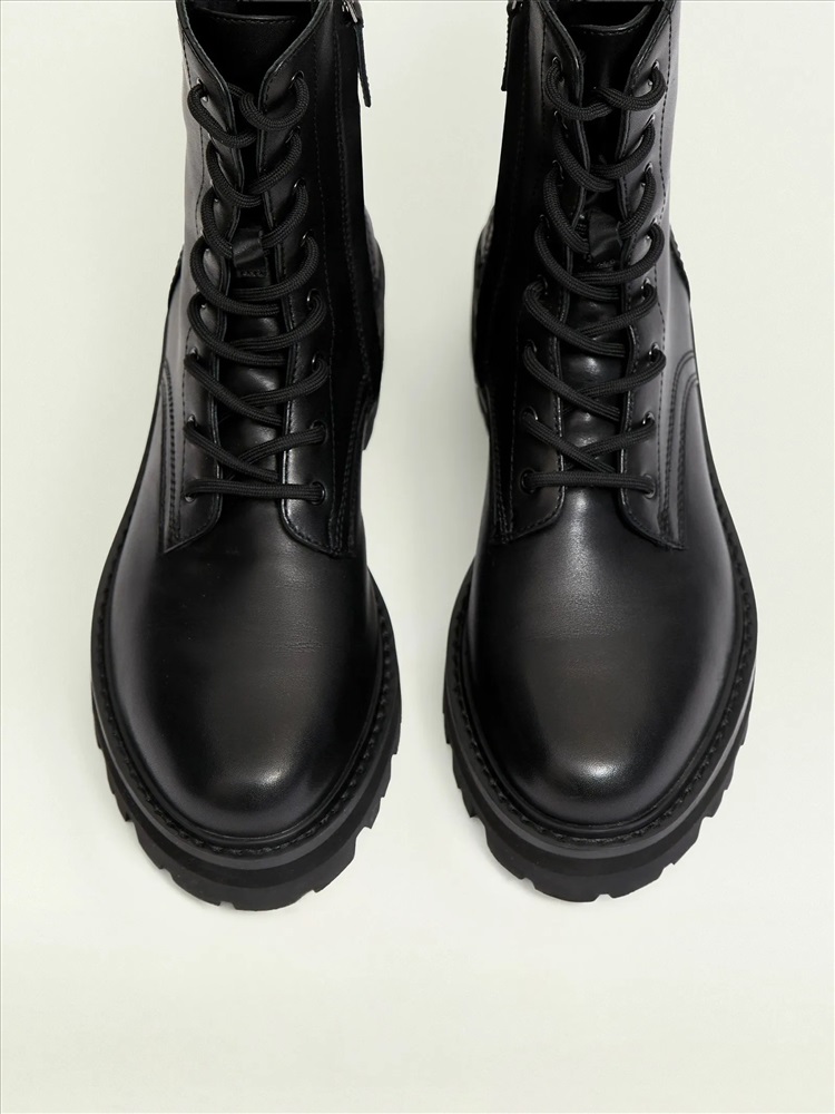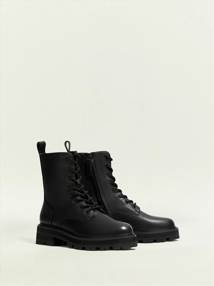 Ботинки из натуральной кожи для демисезонного гардероба. Актуальная модель на тракторной подошве, ставшая базой, подойдёт к любым кэжуал-образам. Разработанная с заботой о вашем комфорте колодка позволяет носить эту обувь весь день и хорошо чувствовать себя в ней. Для большего удобства изделие выполнено с байковой подкладкой.
