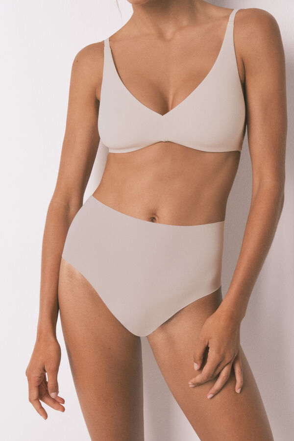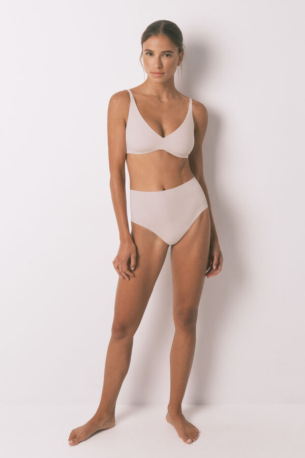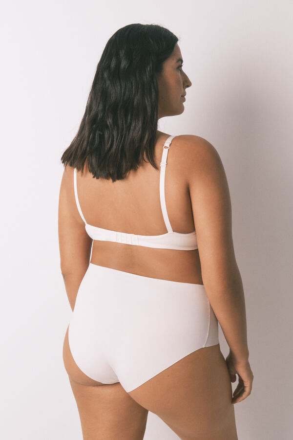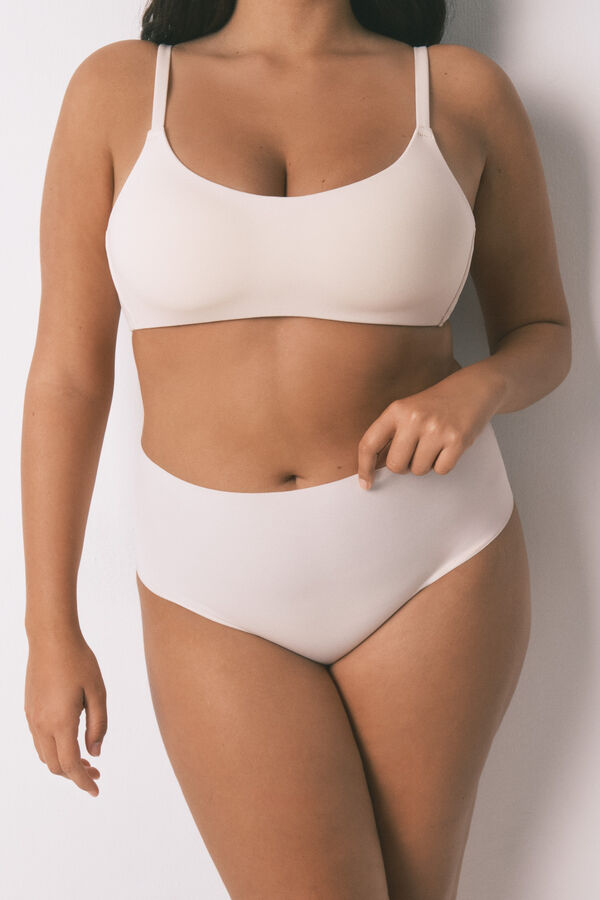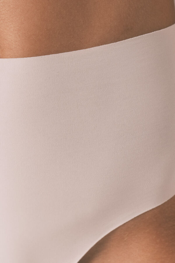 Braga alta a cintura, confeccionada con tejido de algodón, de alta densidad y calidad, y con acabados clean cut. Ideal para llevar debajo de vestidos o faldas. No es moldeadora pero perfecta para transparencias y rozaduras entre piernas.
