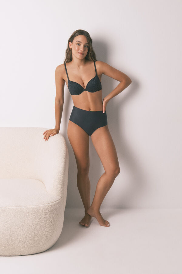 Braga alta clásica, en tejido de microfibra con acabado cortado a láser. Diseño super confort con cortes modernos y detalles sensuales. ¡Es una pieza esencial que no puede faltar en tu armario!