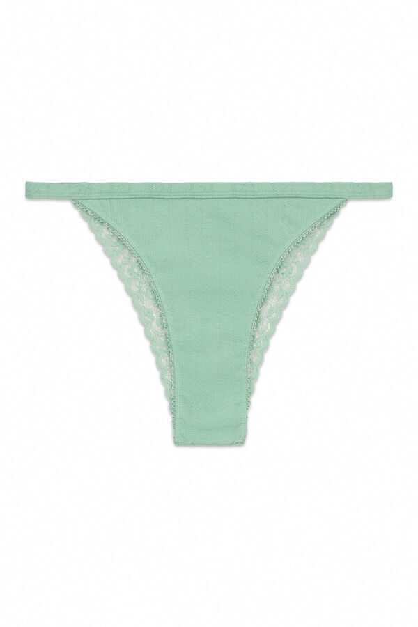 Braga brasileña con frontal de algodón desagujado y culito de encaje floral. Diseñada para ofrecer comodidad y estilo, con detalles que combinan texturas y colores. Ideal para un look moderno y femenino.